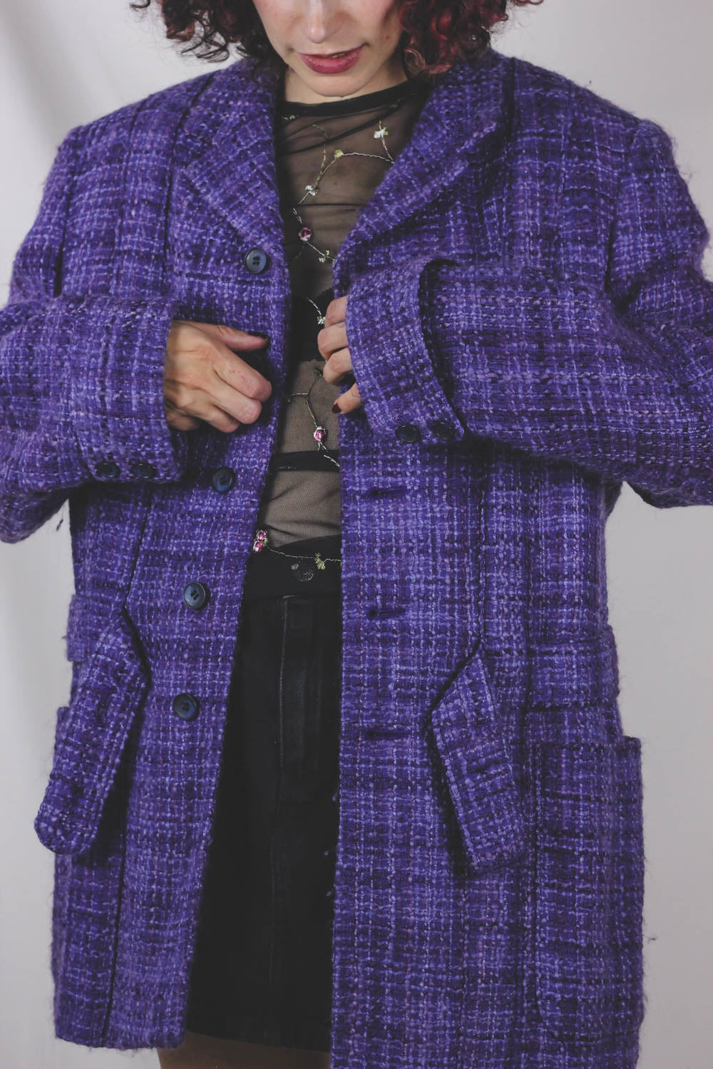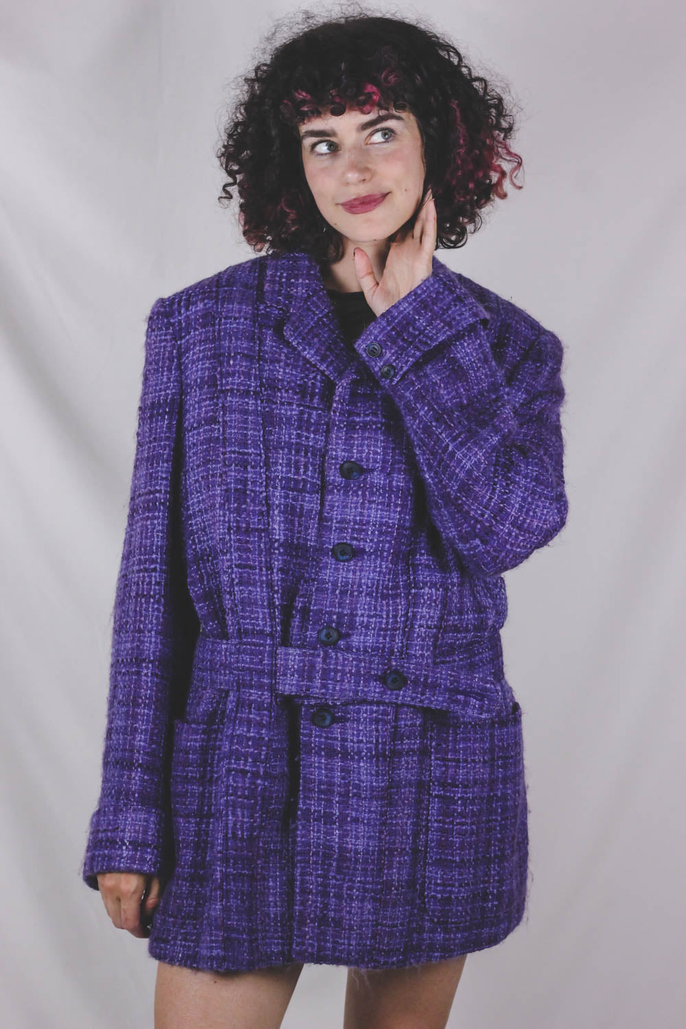 Mielettömän kaunis ja laadukas 60-luvun kotimainen violetti villakangastakki. Tämä takki on todellinen aarre ja pala kotimaista muotihistoriaa. <3 Takissa vyötärönauha ja vuori.