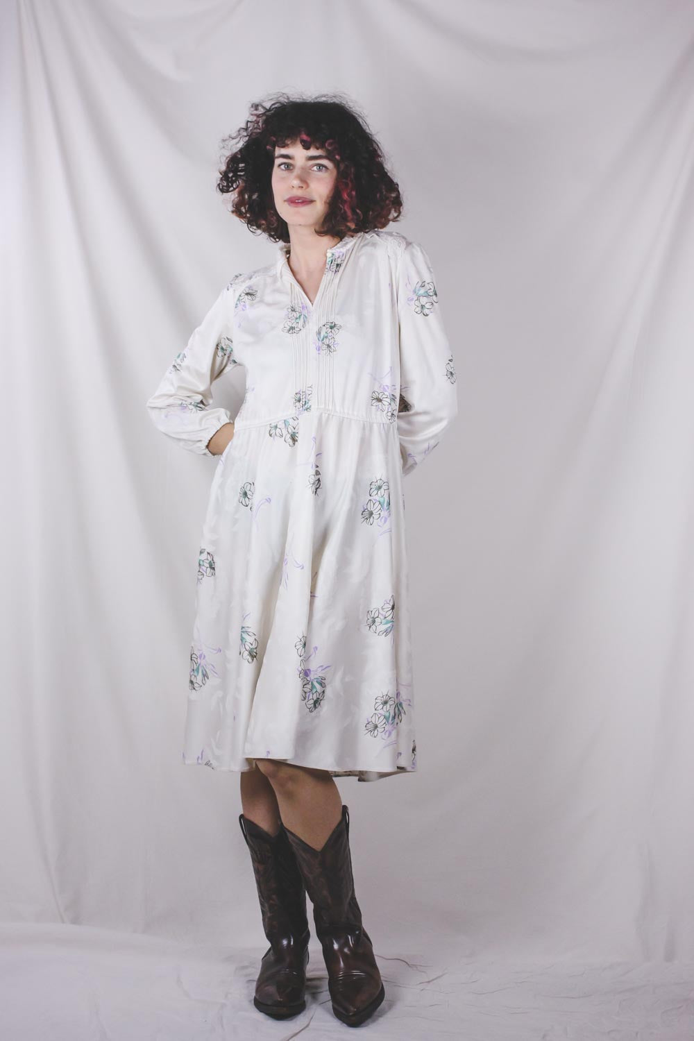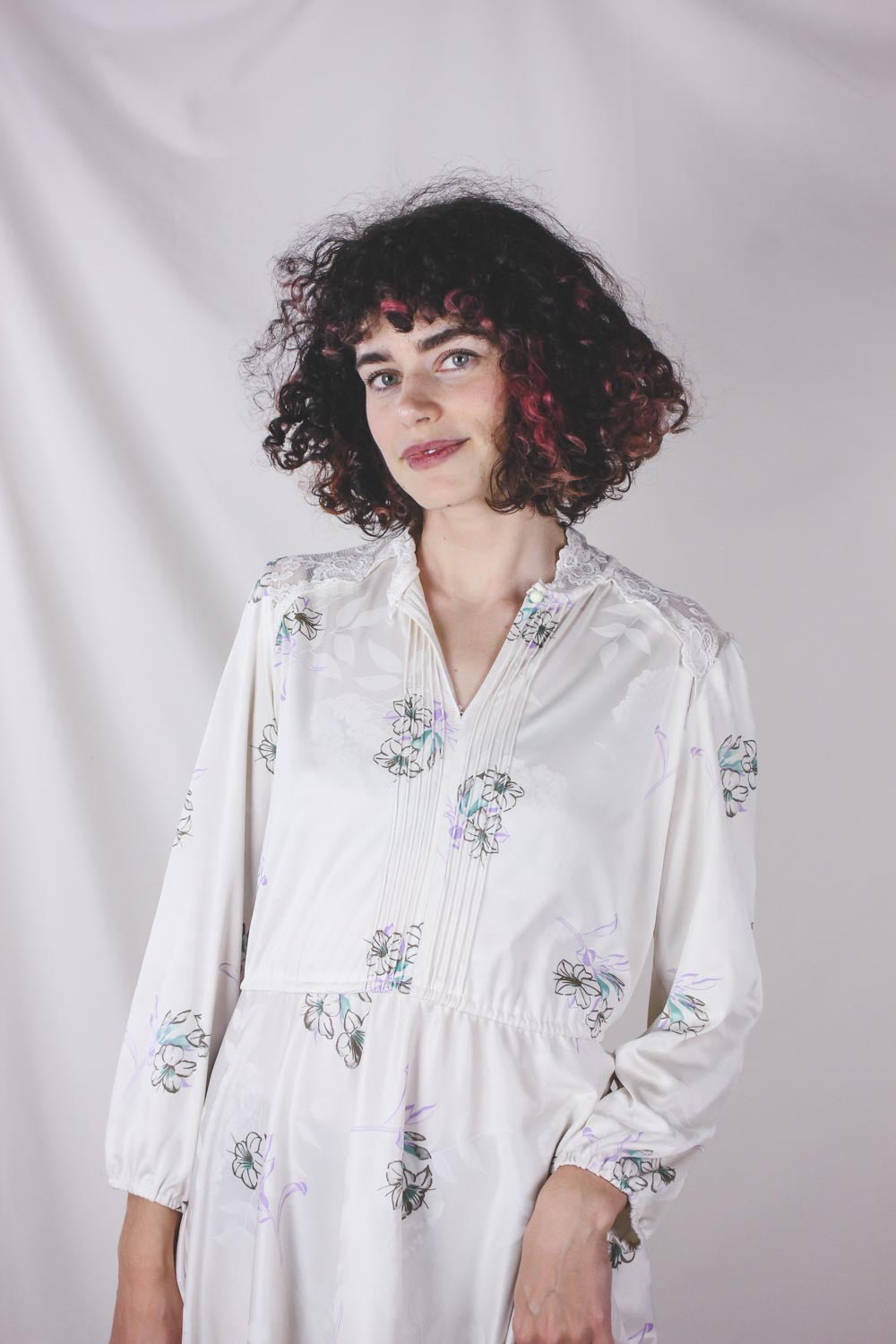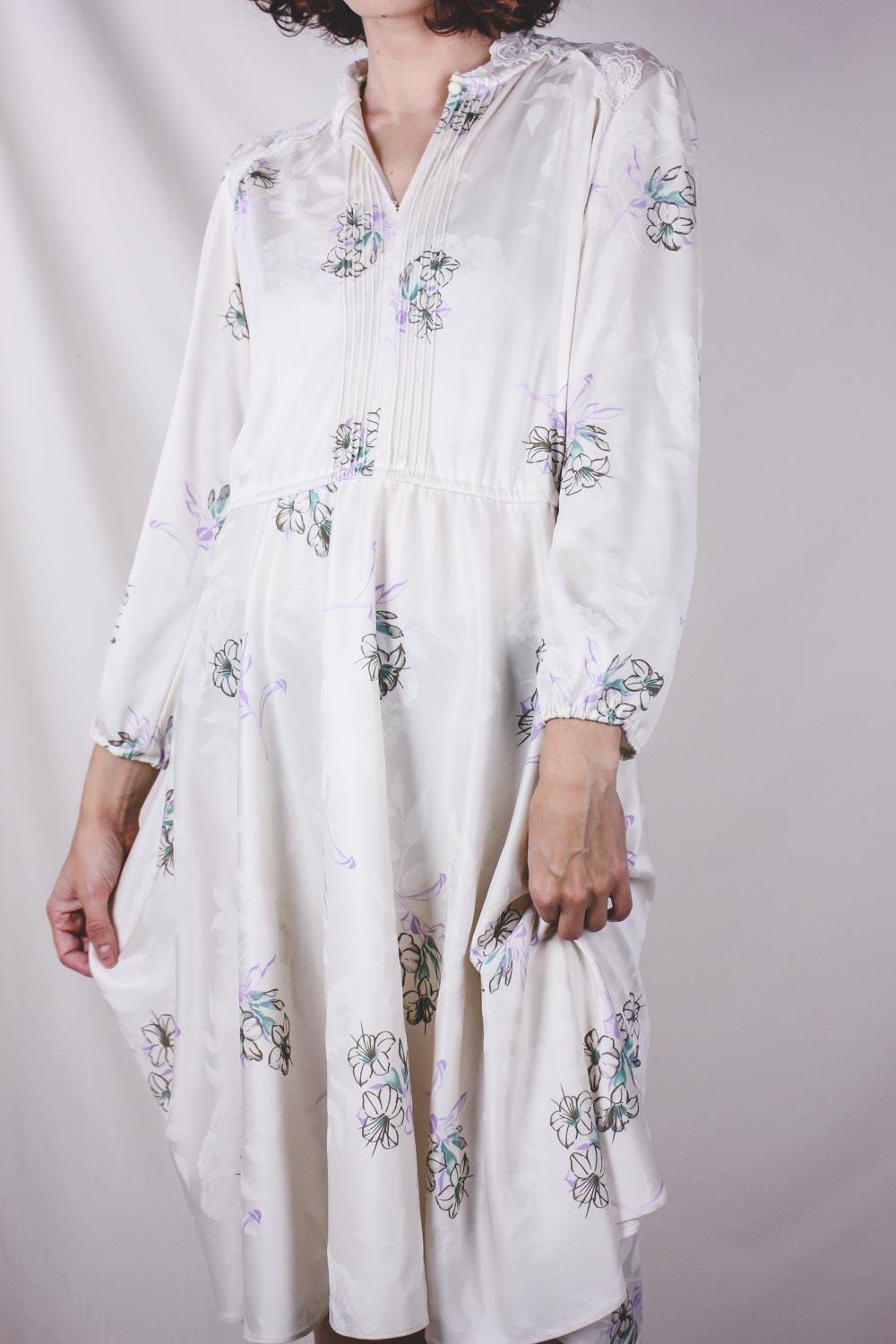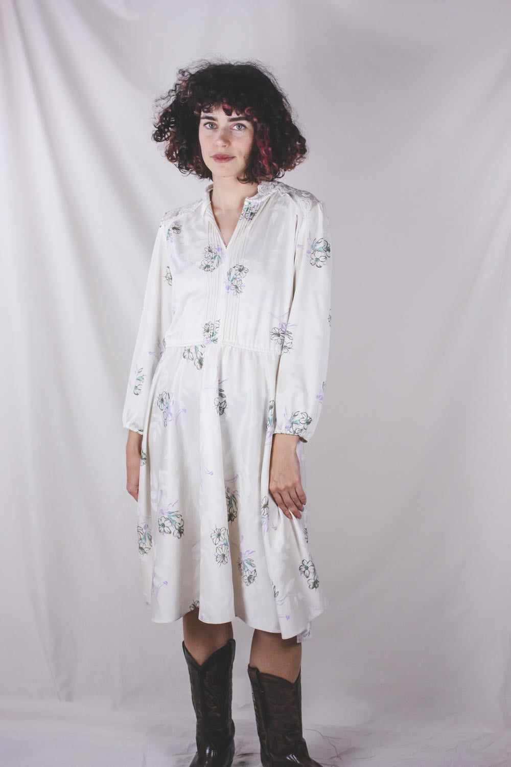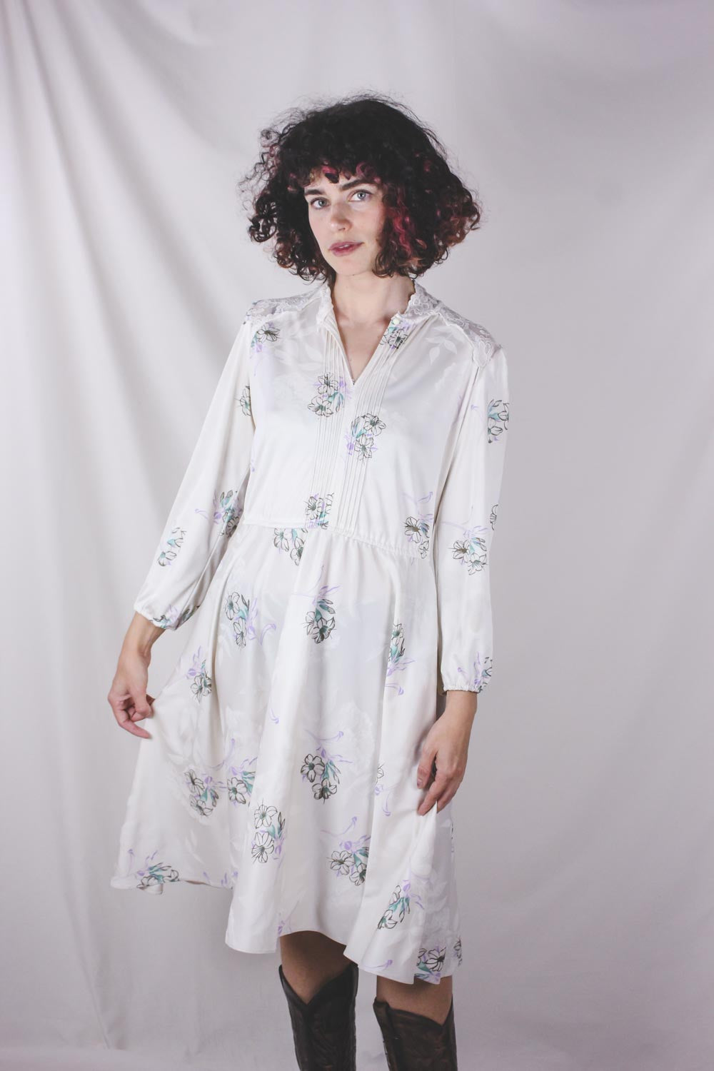 Super suloinen valkoinen käsintehty kukikas vintagemekko! Mekko on ihanan kevyt ja vuoreton. Olkapäillä kauniit pitsisomisteet. Joustavahko.