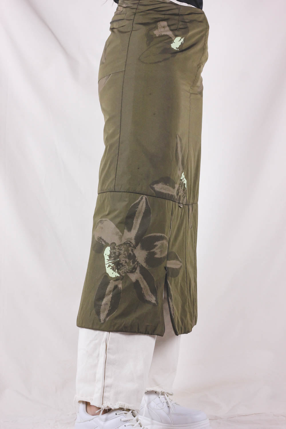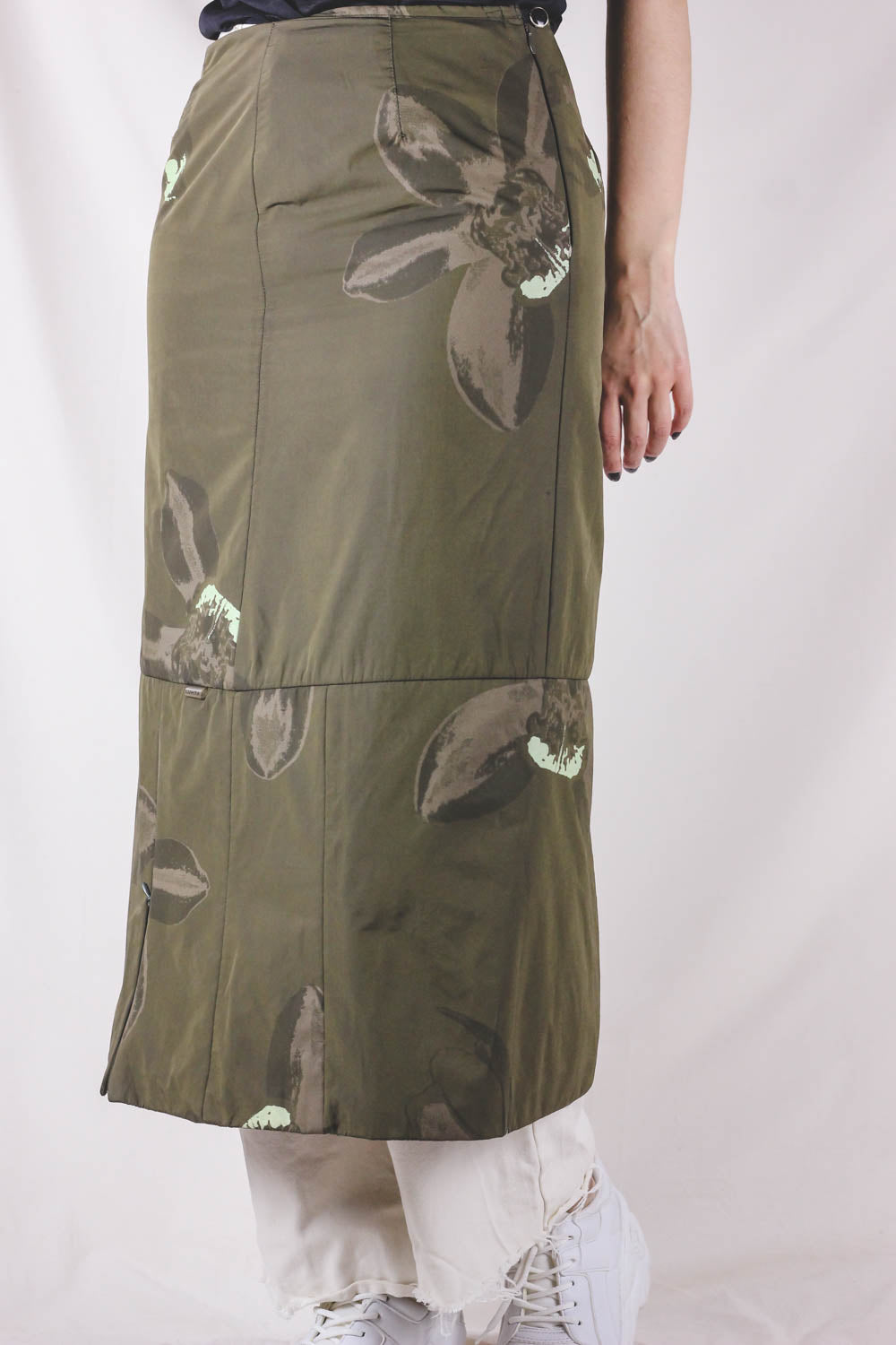 Ihana maastonvihreä Luhdan vintagetoppahame! Hauska kerrostettava lämmin vaate toppahousujen sijasta. <3 Helmassa avattavia vetoketjuja.