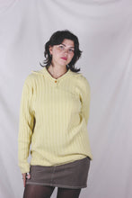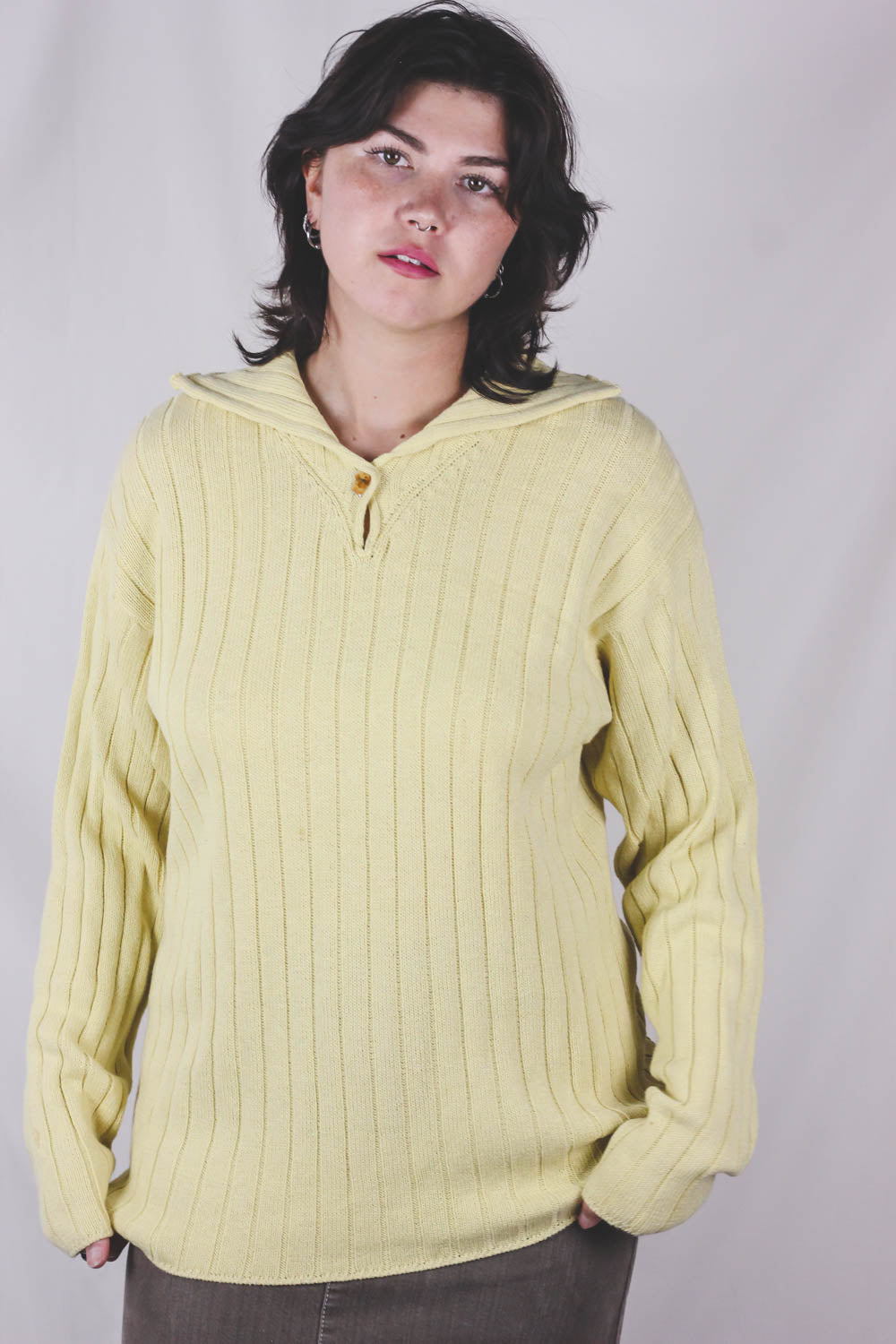 Ihana kotimainen P.T.A.:n vaaleankeltainen puuvillaneule! Kauluksessa söpö nalle pinssi.