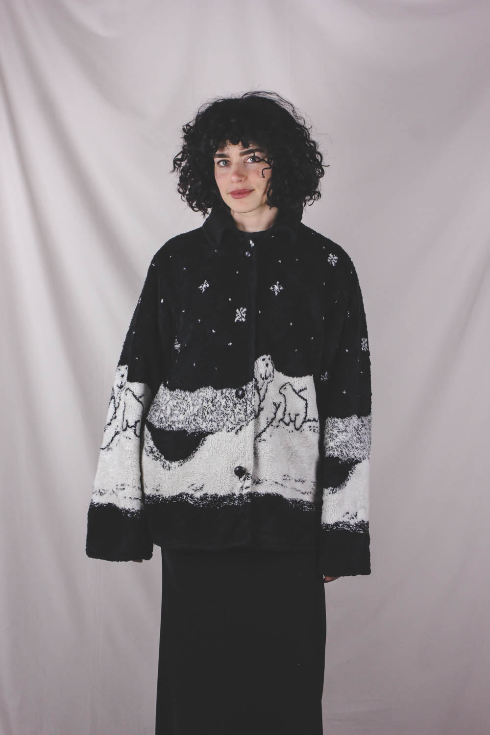 Söpö mustavalkoinnen jääkarhufleece! Suljetaan napein.