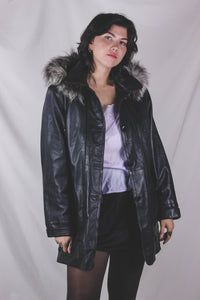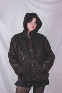 Selena vintagenahkaparkatakki hupulla
