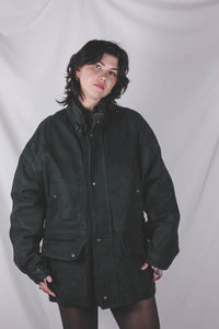 Milona tummanvihreä vintagemokkanahkatakki