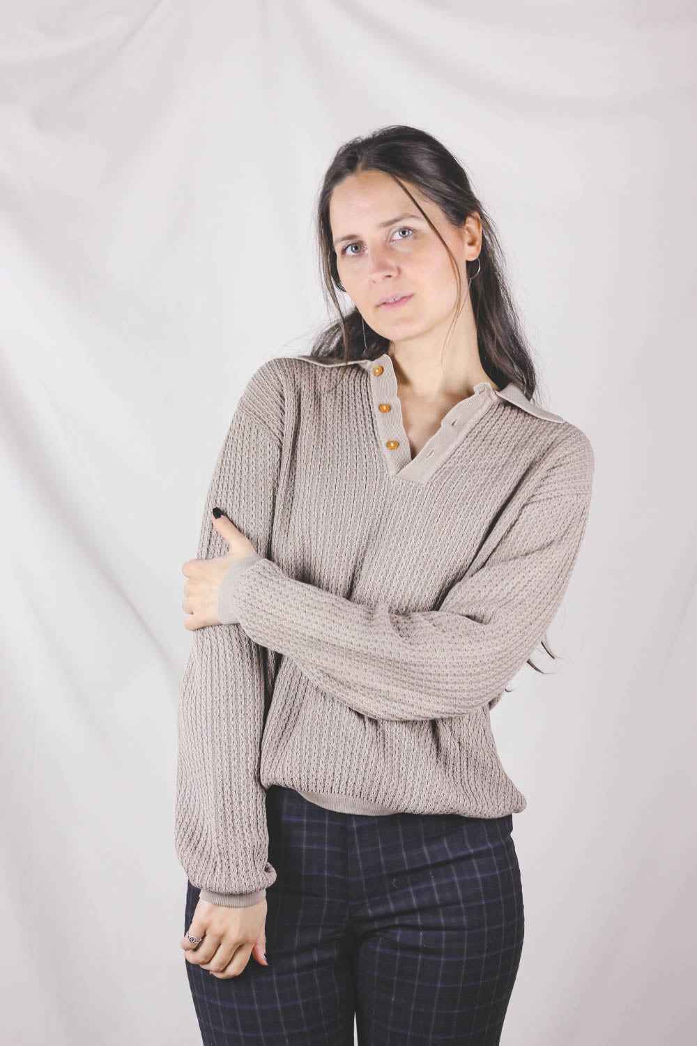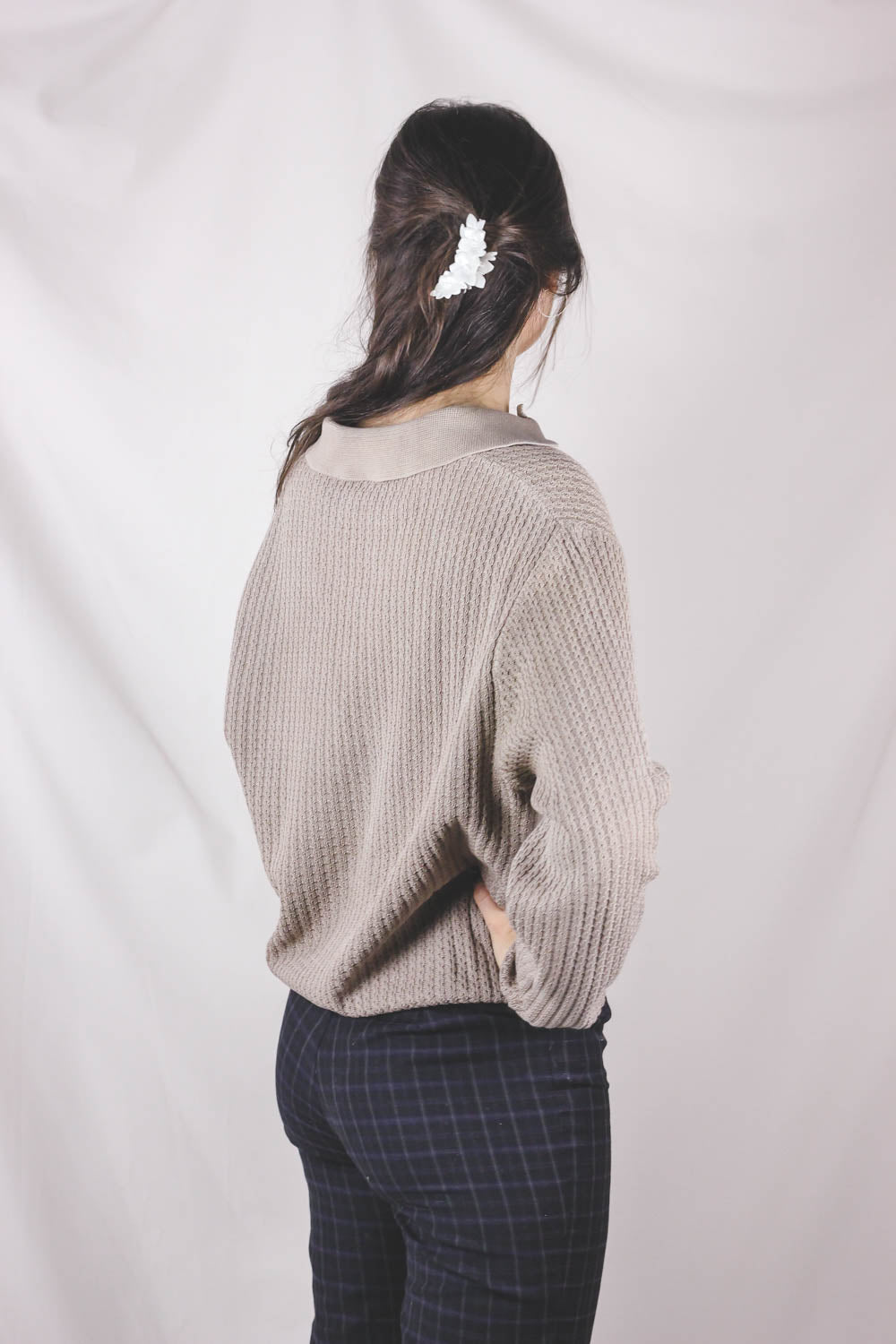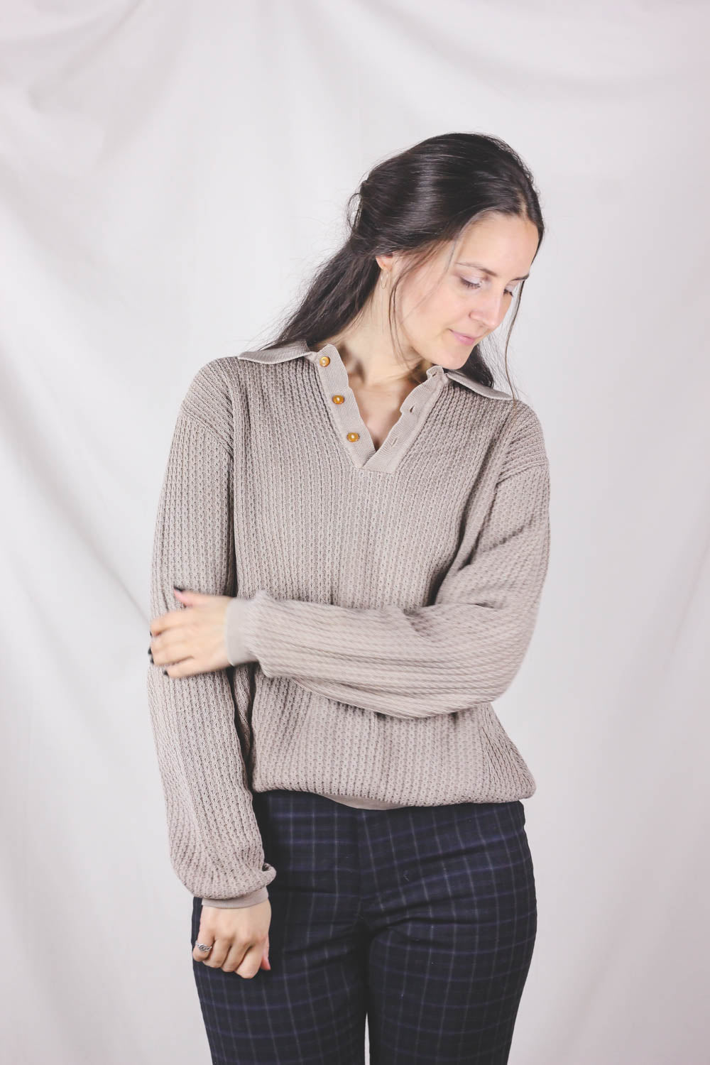 Kaunis savenharmaa mahdollisesti pellavasta valmistettu neule.