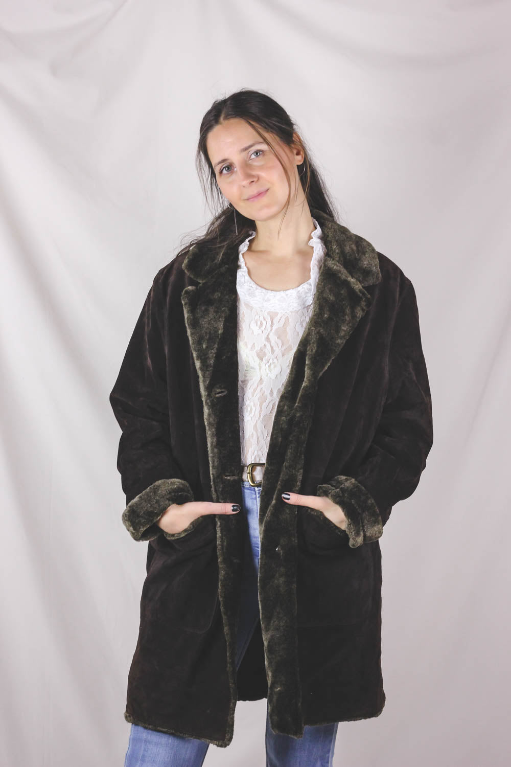 Ihana tummanruskea mokkanahkatakki, jossa karvavuori!<3 Pehmeä ja kevyehkö.