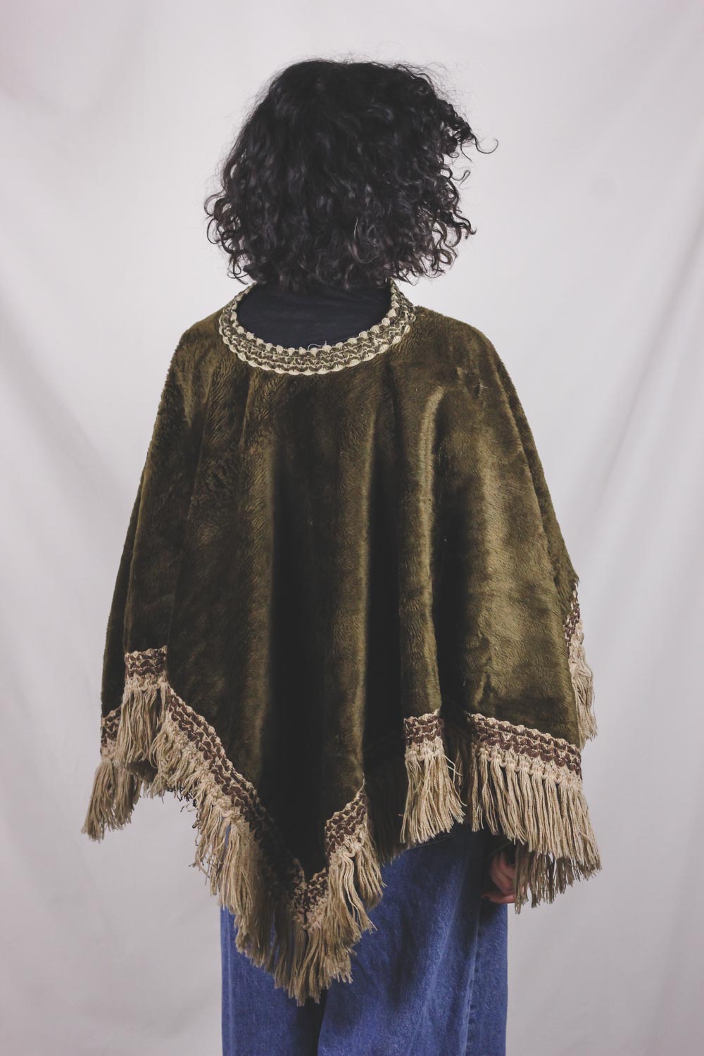 Super upea 60/70-luvun ruskea pehmeä keinokarvainen vintageponcho!