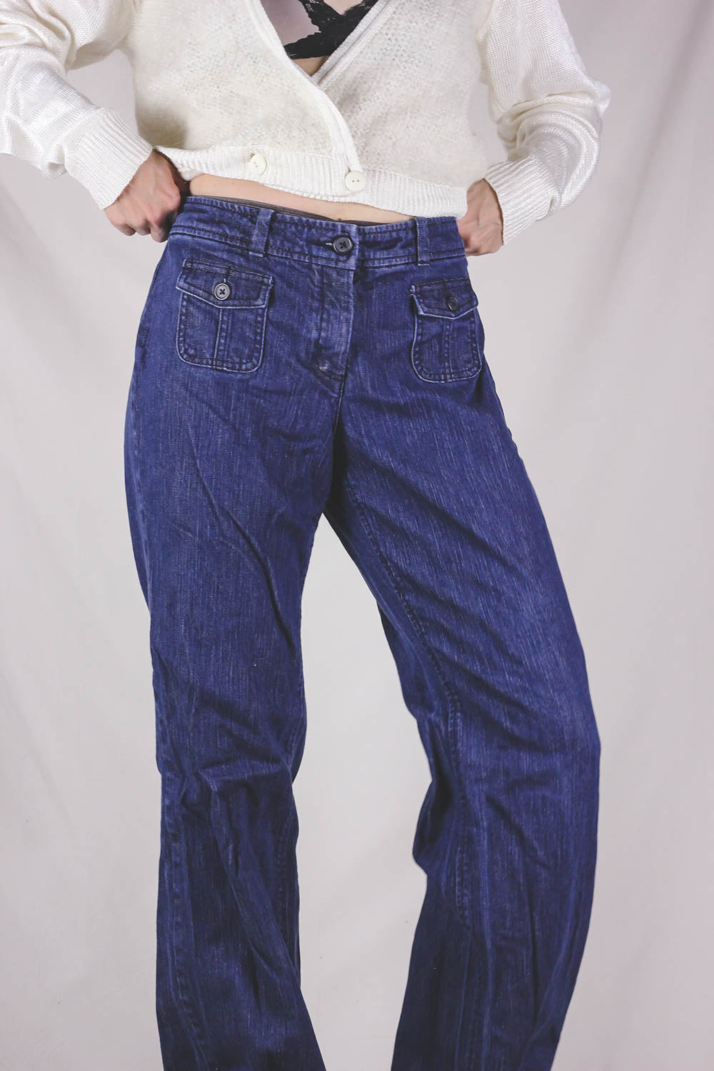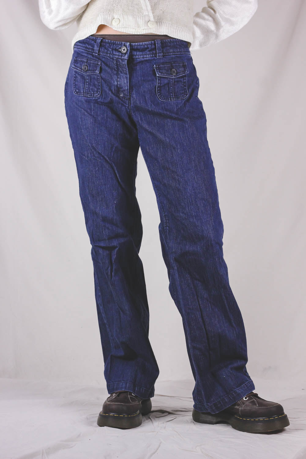 Tummansiniset suorat farkut söpöillä etutaskuilla.