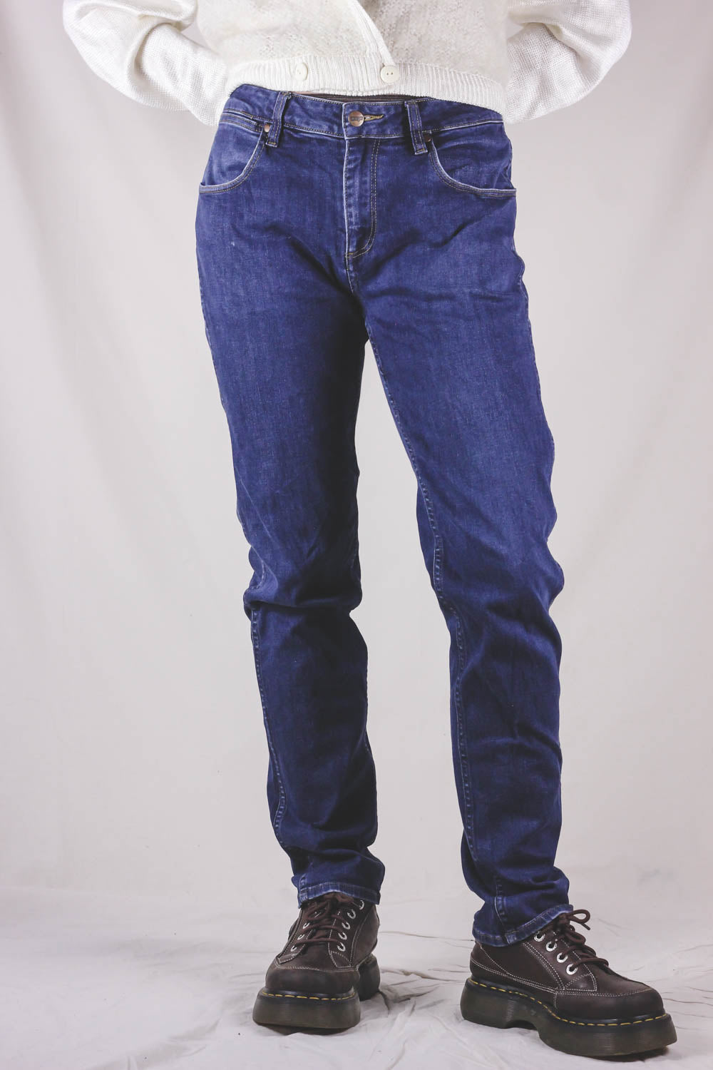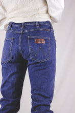 Wranglerin tummansiniset kapeat "stomper" malliset farkut. Kokomerkintä W32.