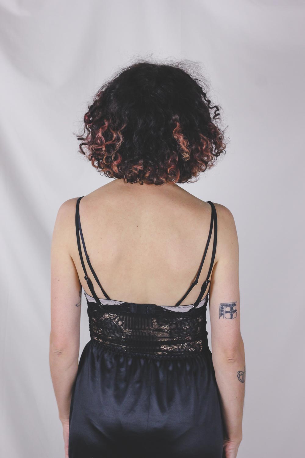 Ihana musta vintagebody, jossa pitsinen keskiosa. Kaaritueton. Olkaimet säädettävissä. Nepparit haarassa. Joustava. Pesty 60 asteessa.