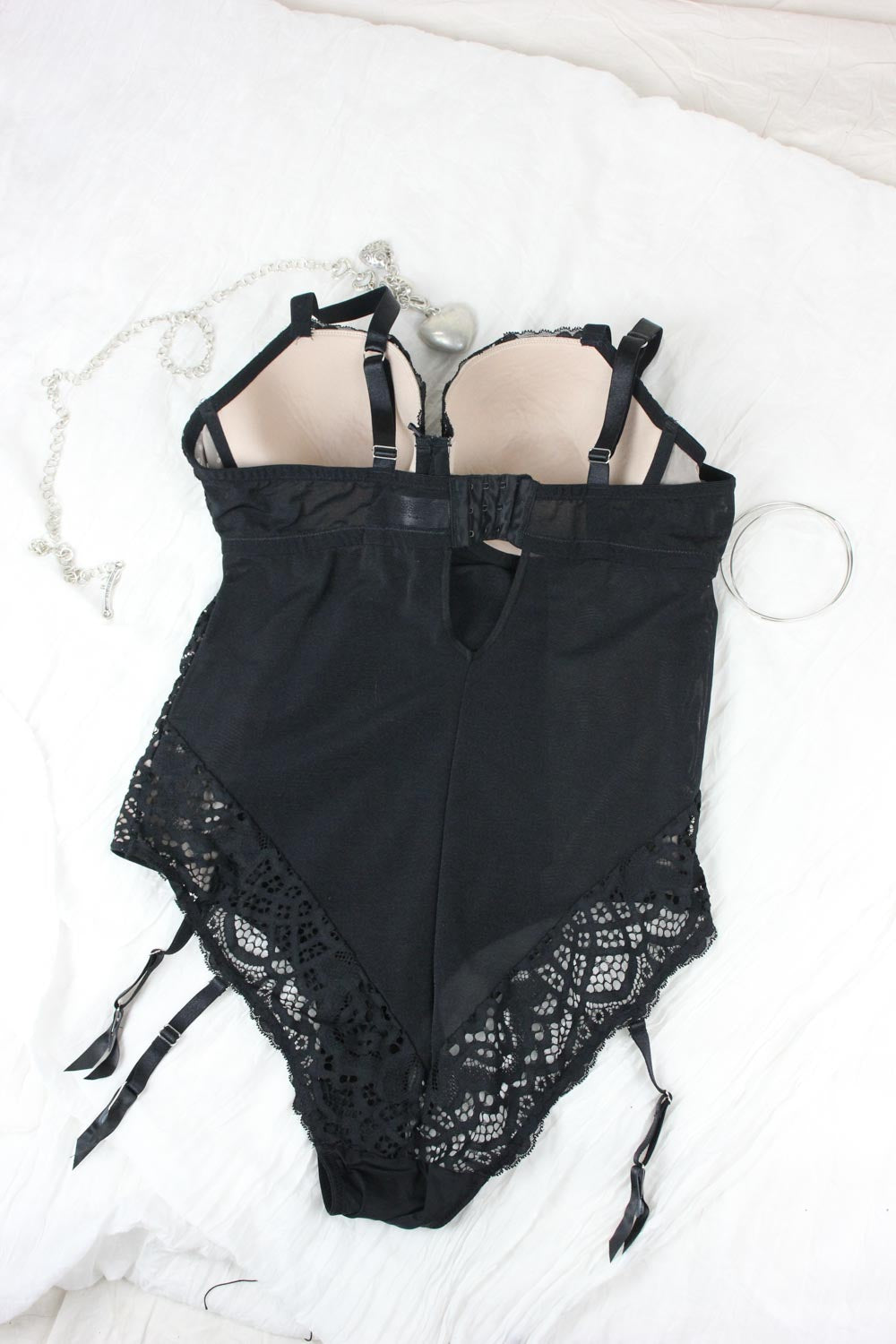 Kaunis joustava vintagebody. Kaarituet. Säädettävät olkaimet. Koko 90C/D. Pesty 60 asteessa. Sukkanauhaliivin osat irrotettavissa.