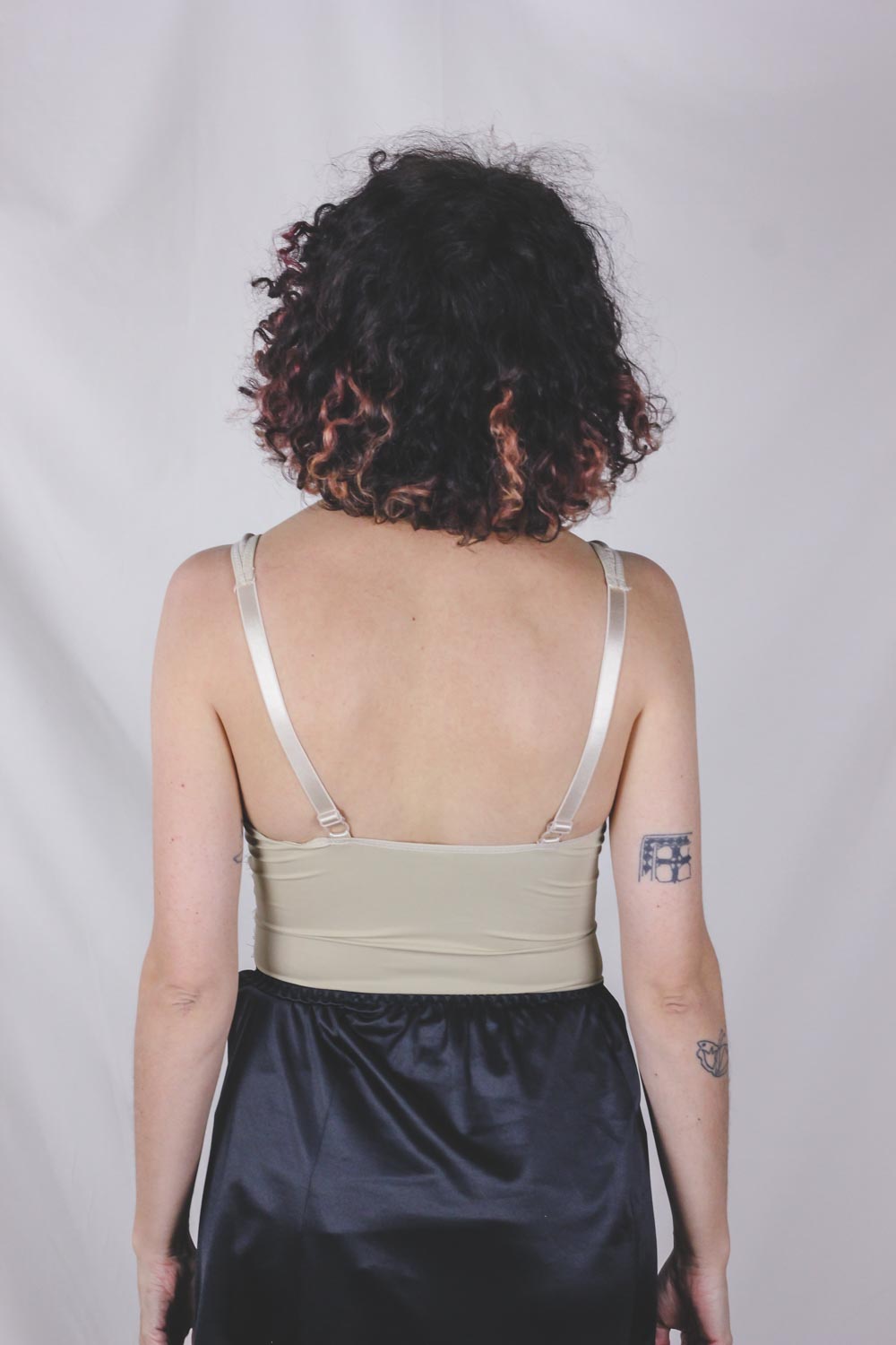 Söpö nude vintagebody! Nepparit haarassa. Kaarituet ja säädettävät olkaimet. Pesty 60 asteessa. B-C kuppi.