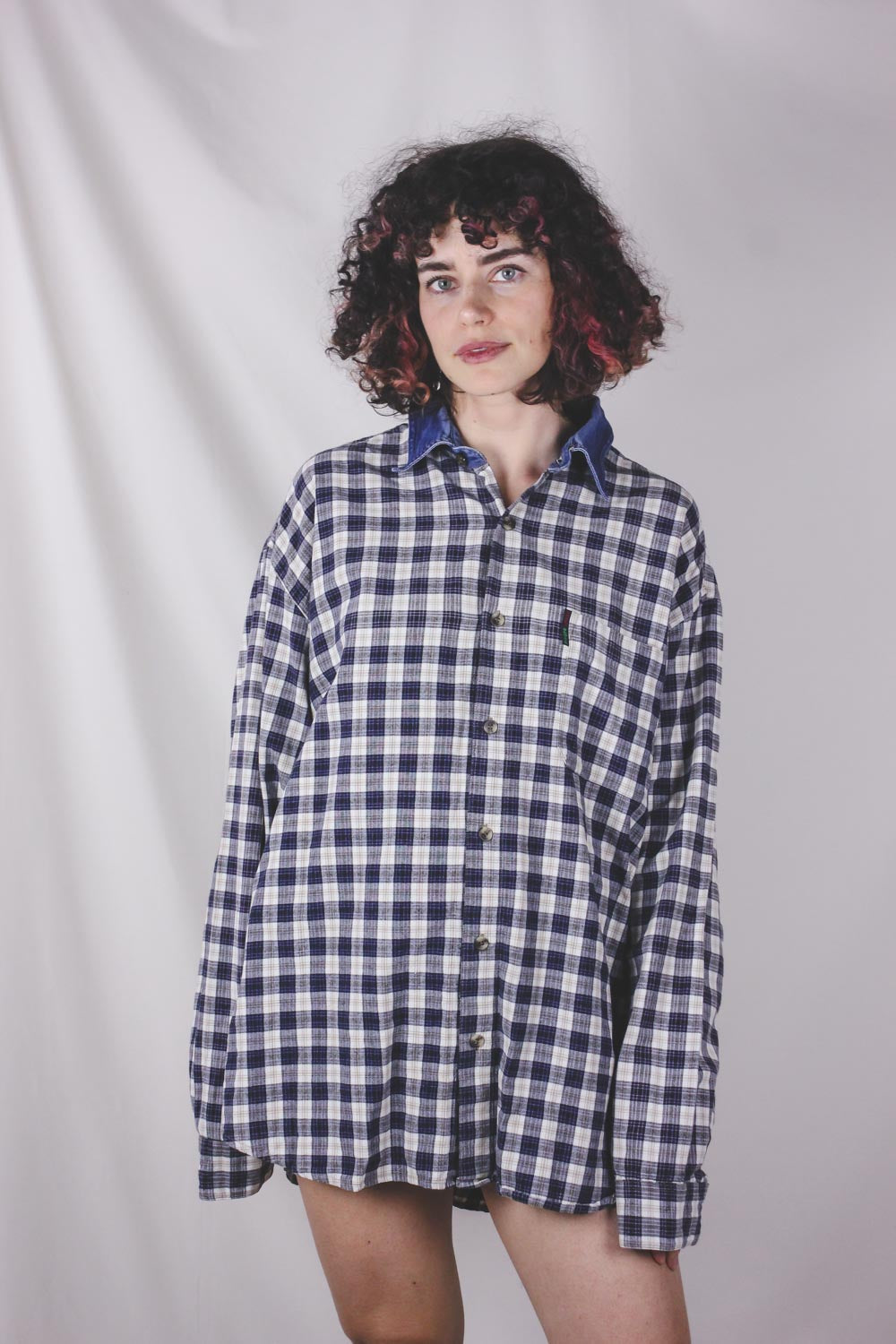 Aivan upea puuvillainen ruutupaita, jossa denimkaulukset! Kotimainen.