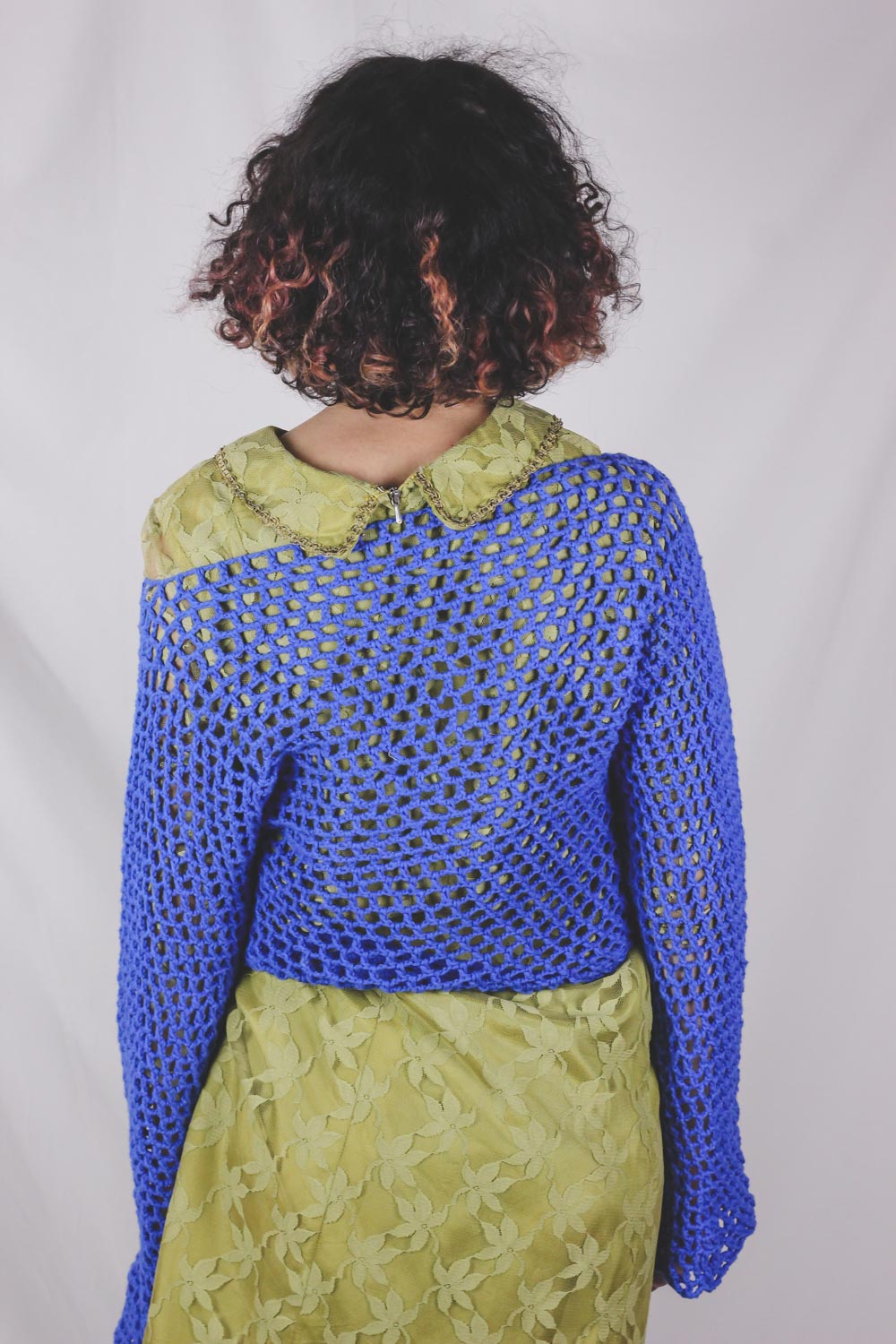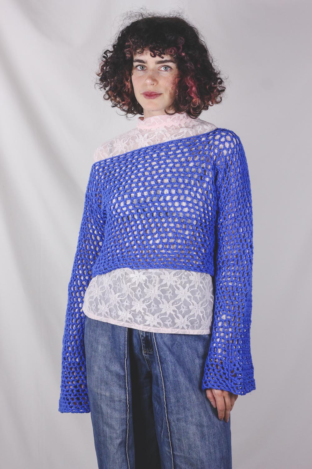 14 vuorokauden palautusoikeusAivan upea sininen taiteilija Petra Kinnusen virkkaama puuvillapaita. Paidassa ihanat levenevät hihat. Helppo kerrostaa! Paidan valmistuksessa on hyödynnetty kierrätysmateriaaleja.