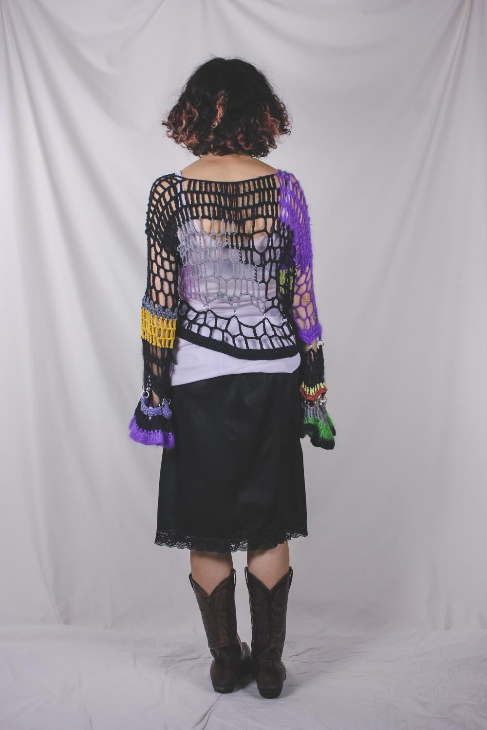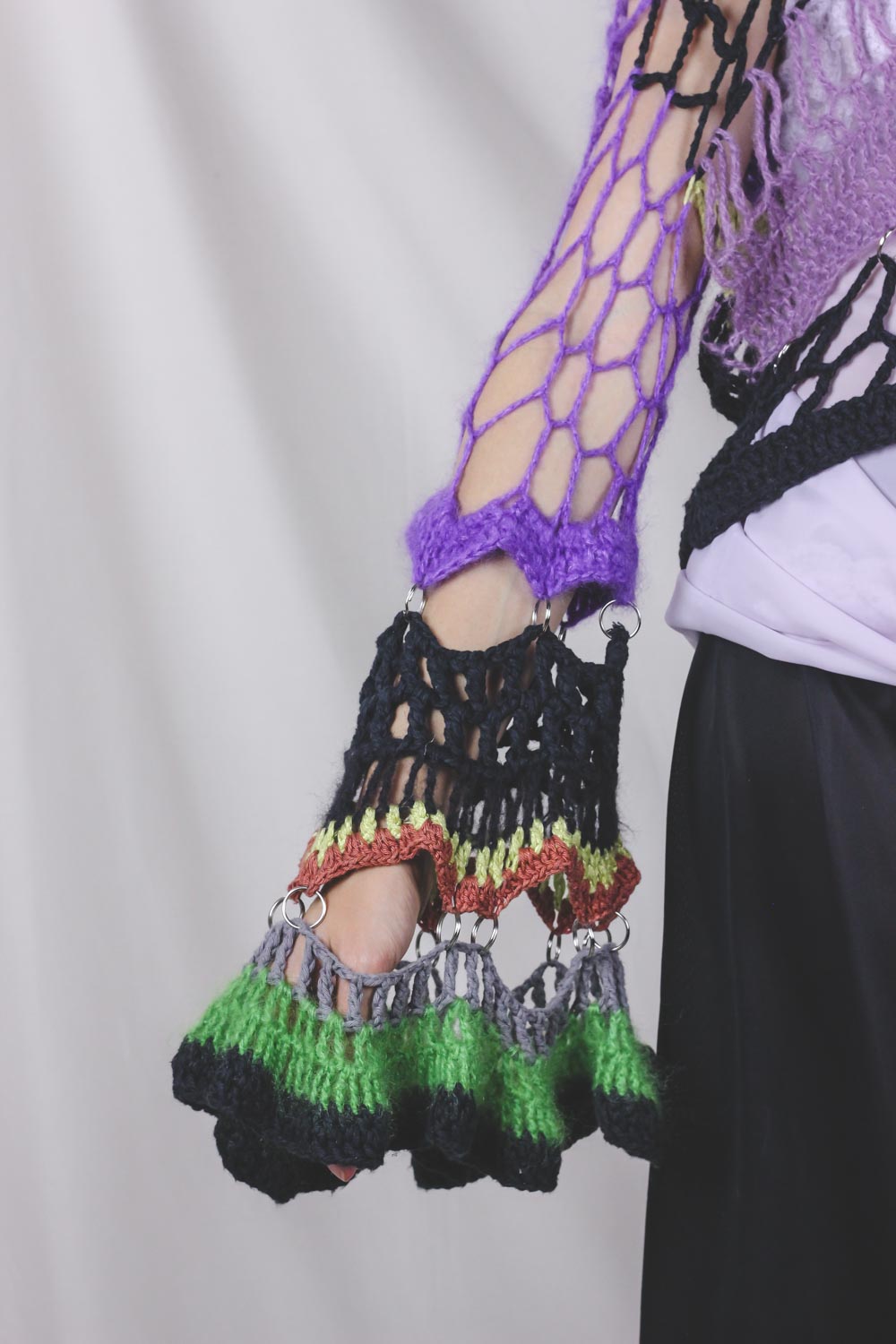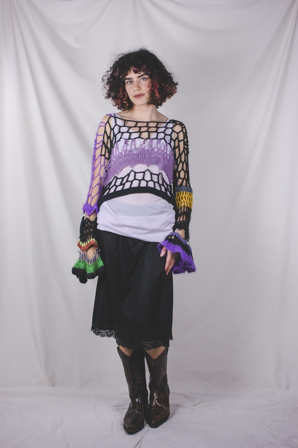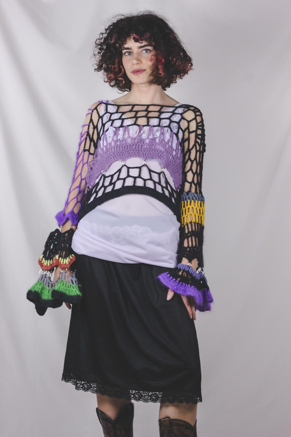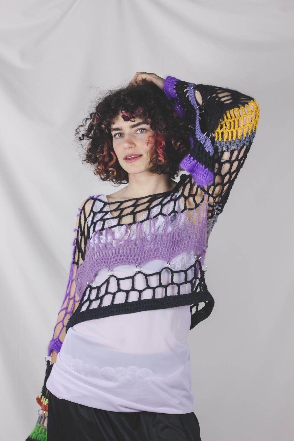 Petra Kinnunen on helsinkiläinen katutanssija ja taiteilija, joka työskentelee laajasti eri materiaalien ja medioiden parissa. Radhicassa on myynnissä valikoima Petran virkkaamia vaatteita, jotka on valmistettu kierrätetyistä langoista.