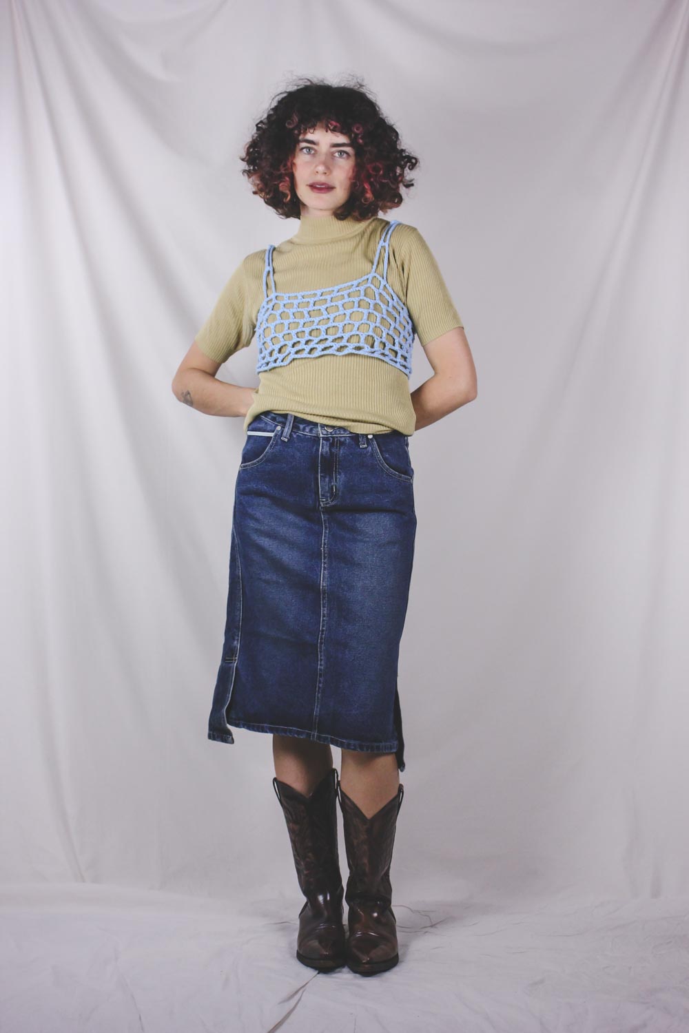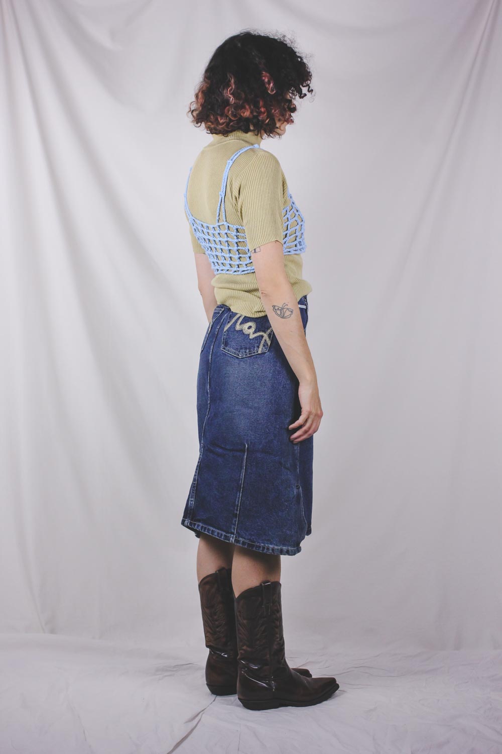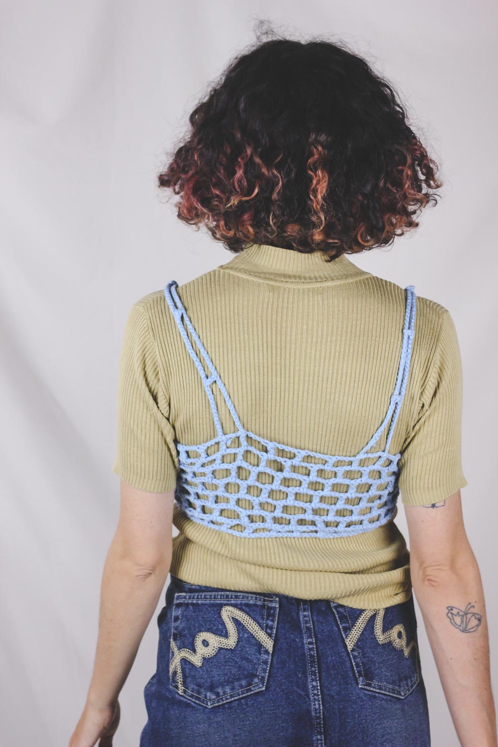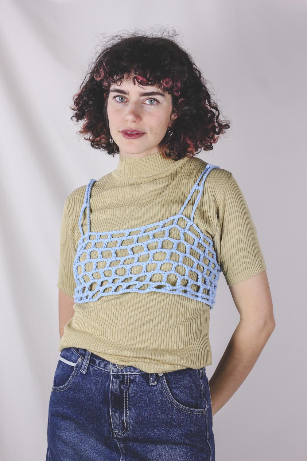AIvan ihana vaaleansininen taiteilija Petra Kinnusen virkkaama toppi. Helppo kerrostaa tai käyttää sellaisenaan kesätoppina! <3 Topin valmistuksessa on hyödynnetty kierrätysmateriaaleja.