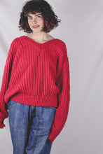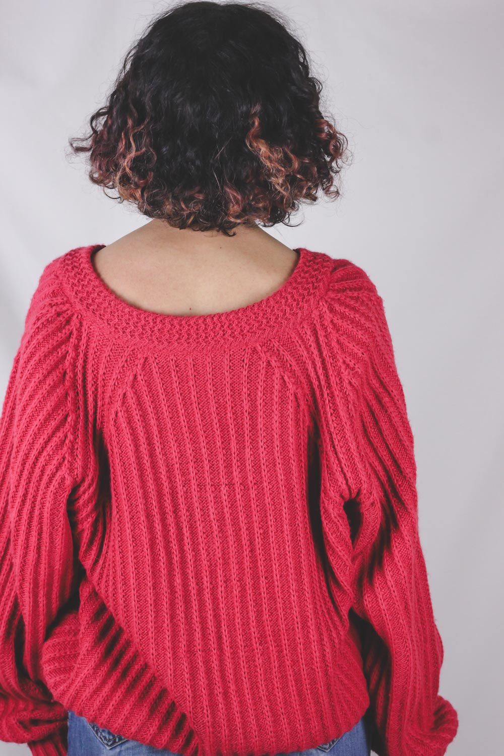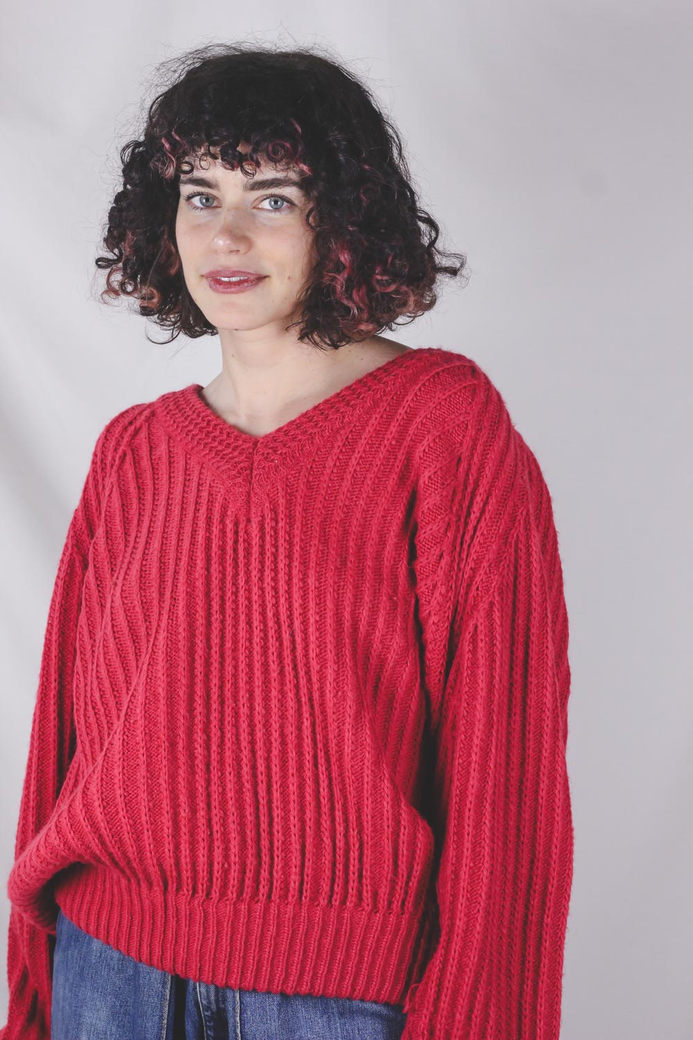Ihana italialainen villasekoitteinen korallinpunainen vintageneule. Joustava.