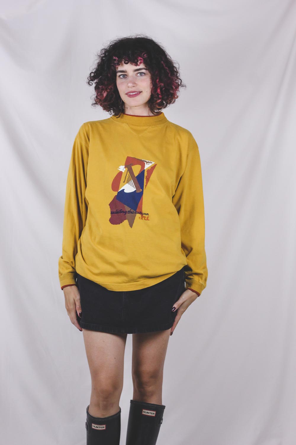 Super ihana sinapinkeltainen kotimainen P.T.A.:n puuvillainen svetari. Kokomerkintä S, mutta sopii mittojen puolesta myös vähintään noin 38 kokoiselle. Upeassa kunnossa!