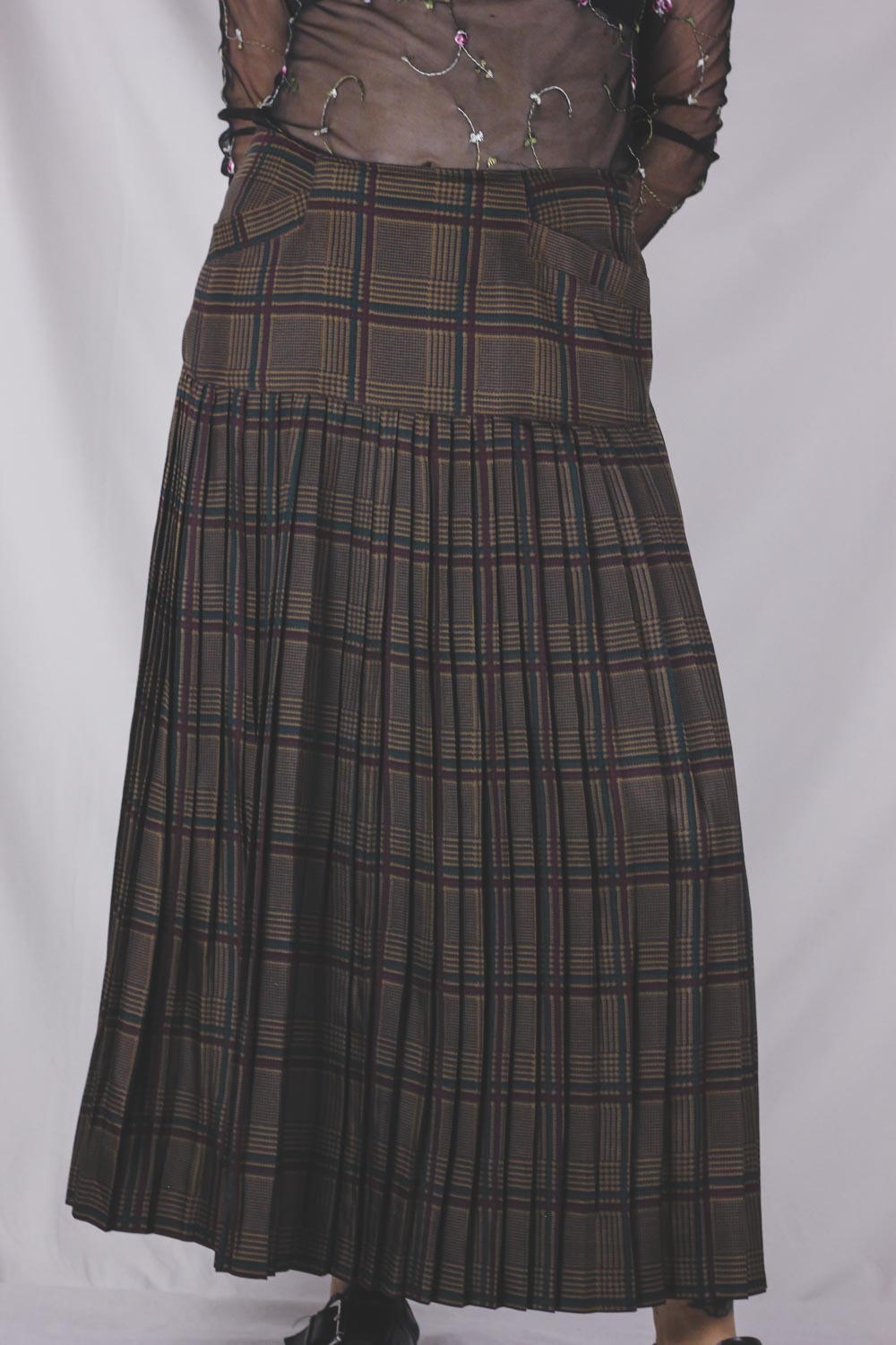 Upea ruutukuvioitu vintagesikkihame. Hameessa vuori.