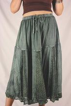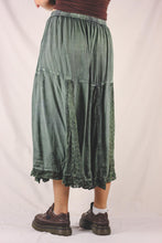 Super kaunis vihreä keijuhame, jossa läpikuultavia pitsisiä osioita! Vyötäröllä kuminauha ja sidottavat nauhat. Vuoreton. Täydellinen kerrospukeutumiseen! Käyttäjän pituudesta riippuen joko midi tai maksi.