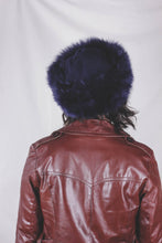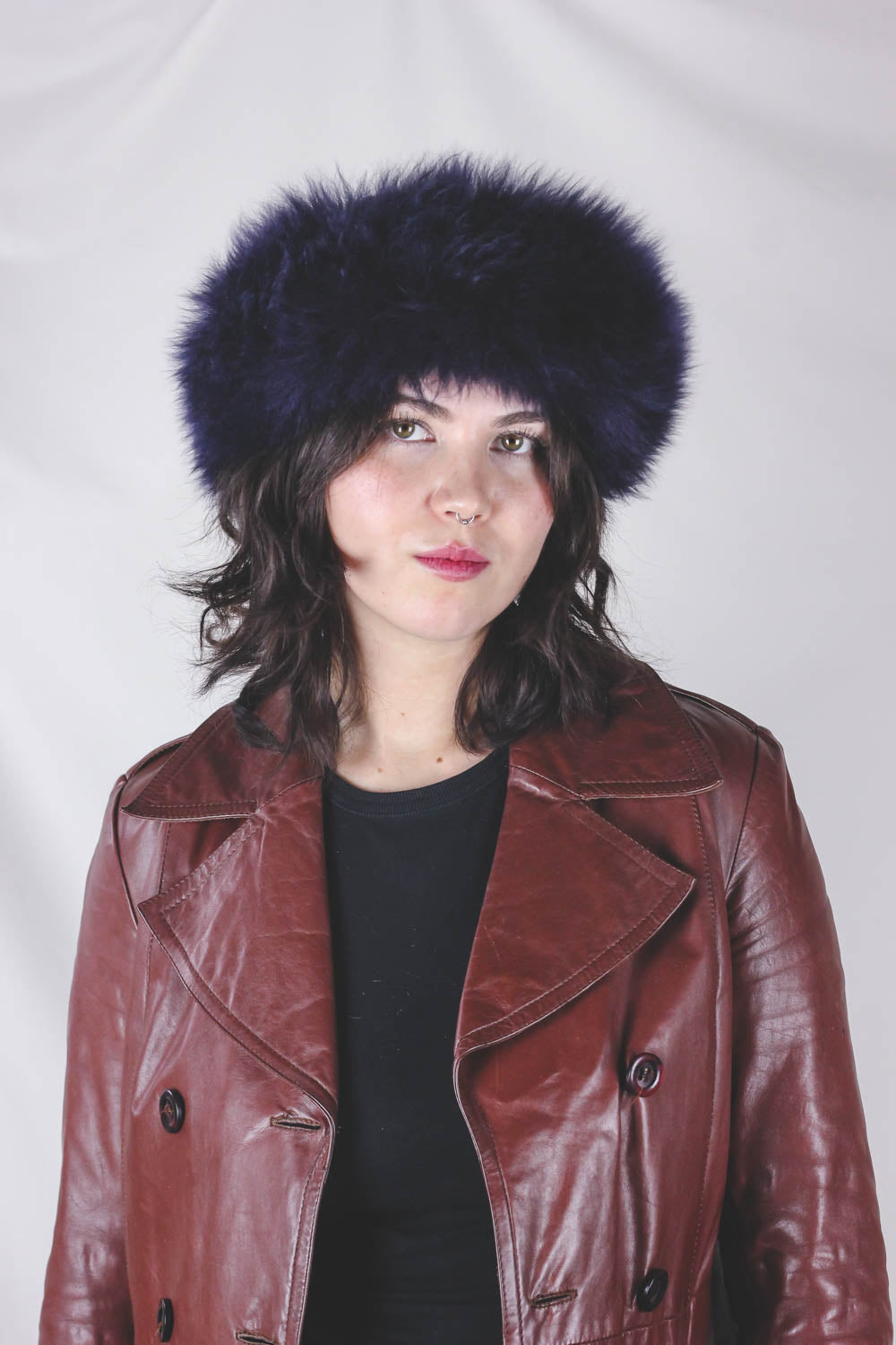 Upea tummansininen aidolla karvalla oleva vintagehattu.