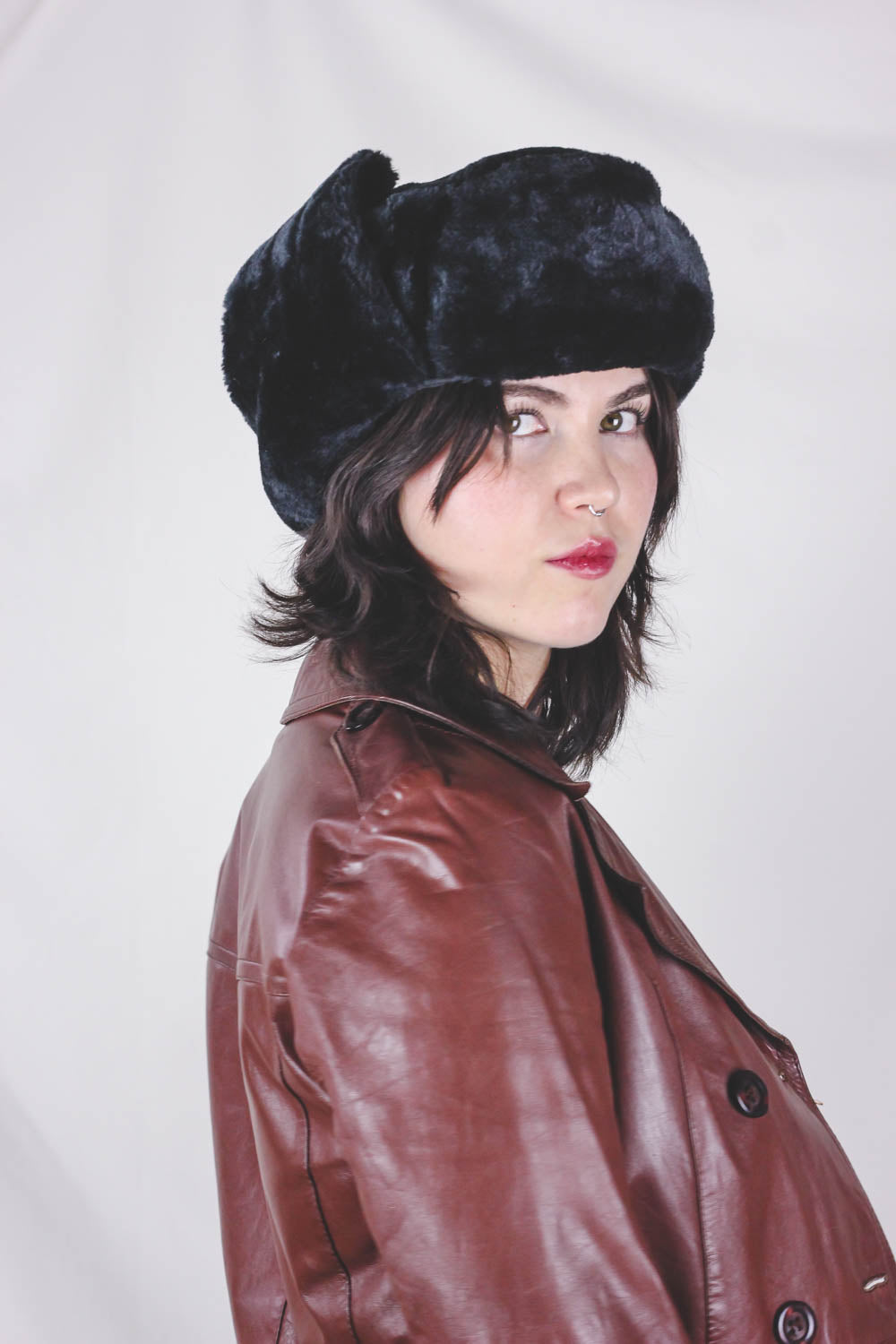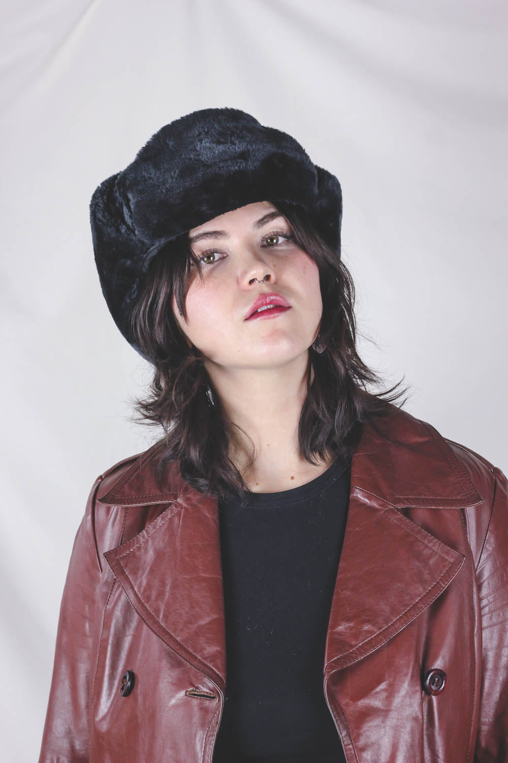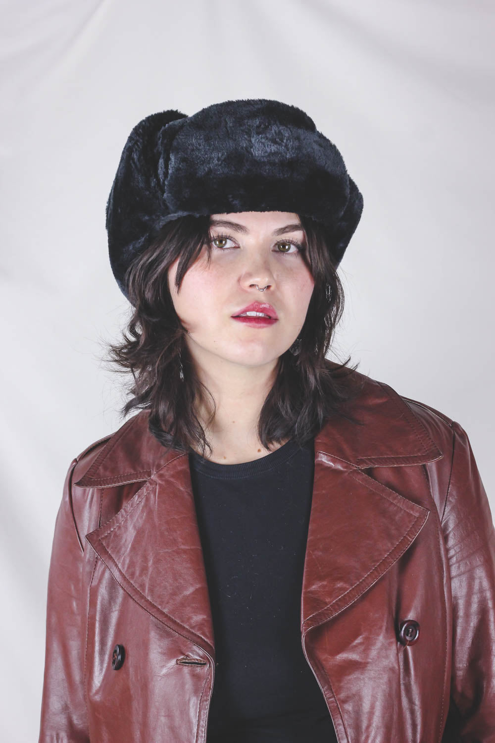Ihana musta vintagekarvahattu! Hatussa korvaläpät, jotka kuvissa sidottu ylös.