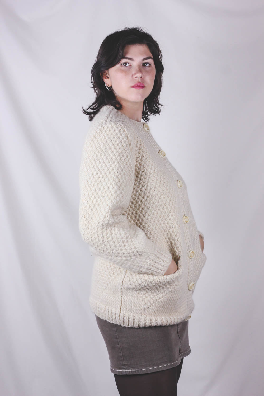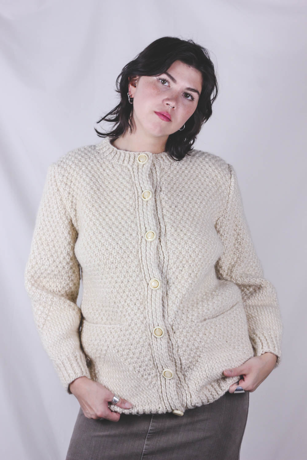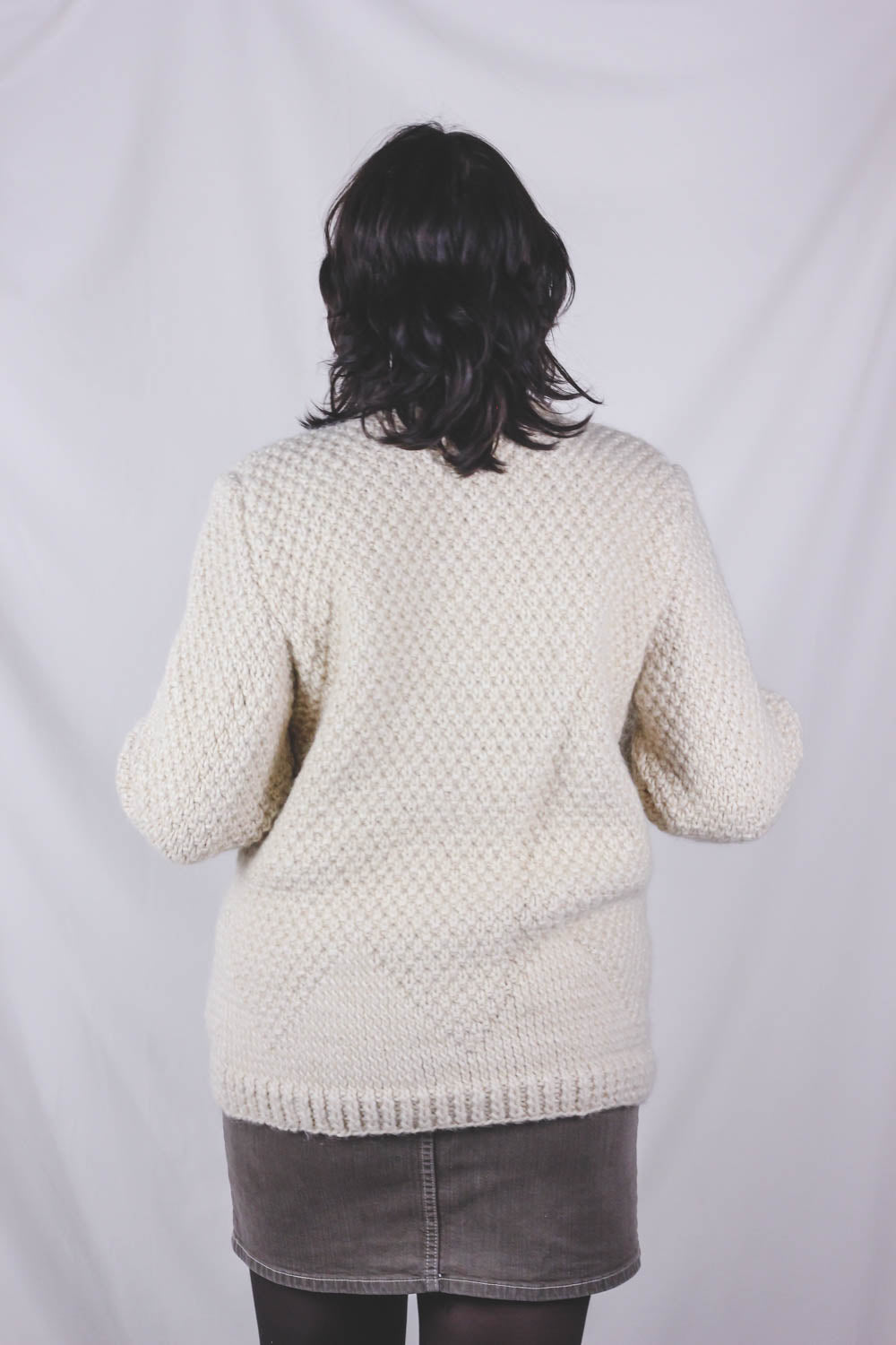 Paksu ja painavahko luonnonvalkoinen käsintehty villaneule!
