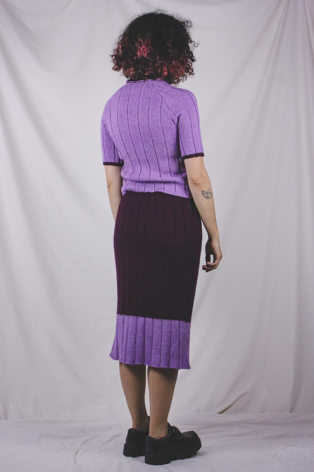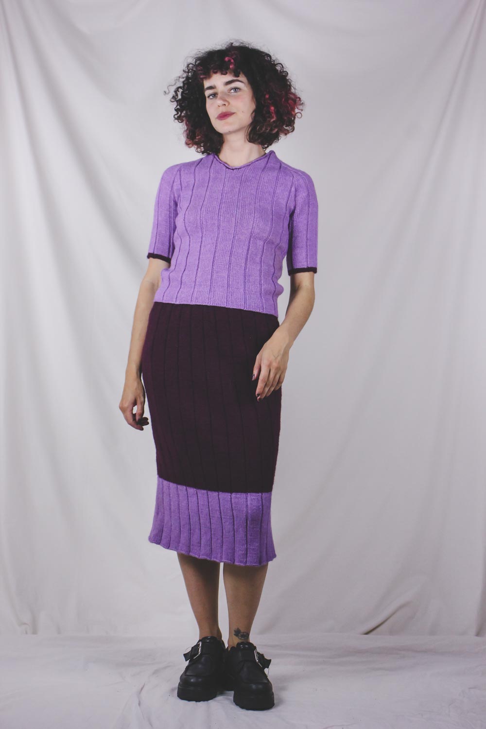 Super ihana käsintehty villaneulesetti, johon kuuluu yläosa ja hame. Hameessa kuminauhavyötärö ja vuori. Joustava. Jos alaosasta poistaa vuoren, saa siihen lisää joustoa.