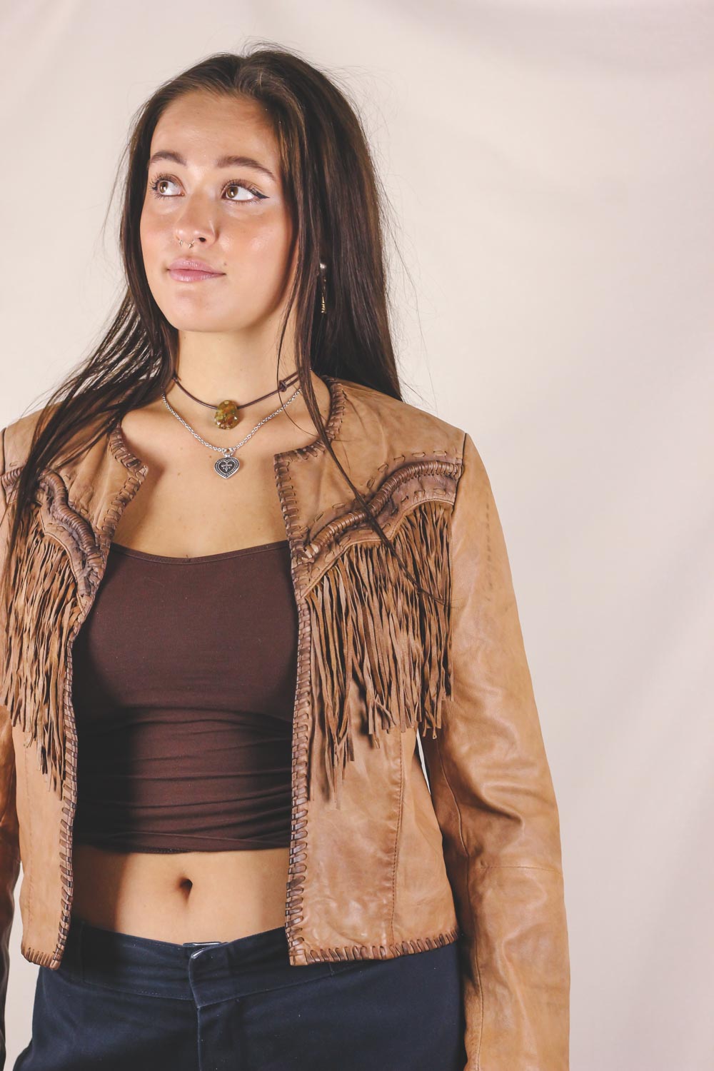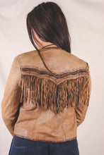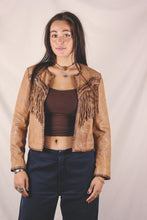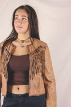 Kaunis kamelinruskea avonainen hapsunahkatakki.