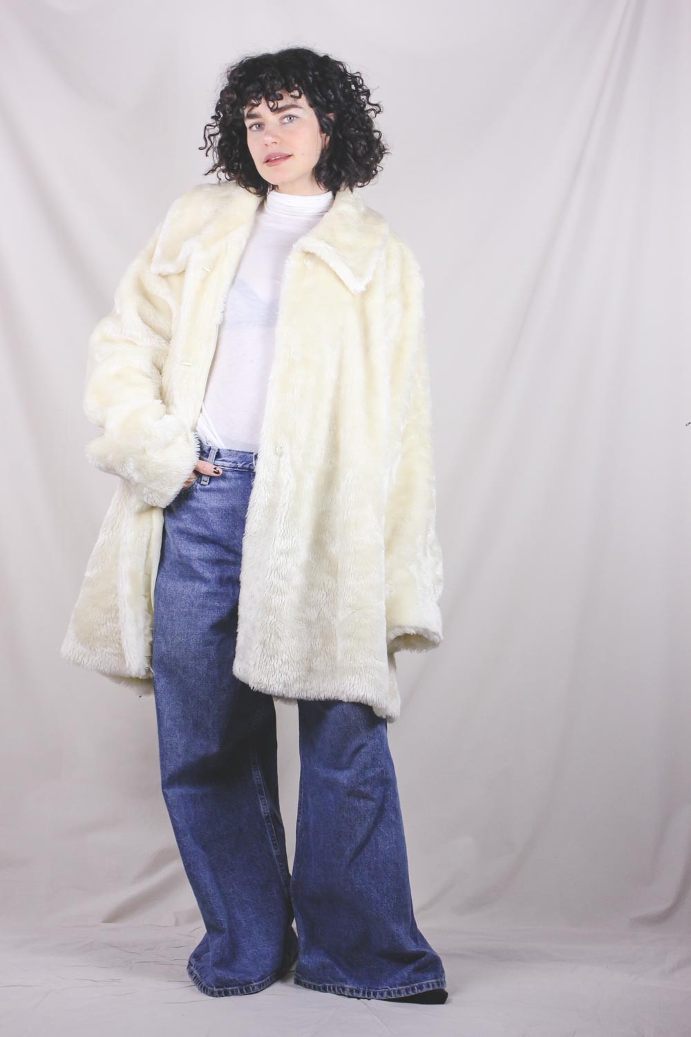 Upea a-linjainen kermanvalkoinen keinokarvatakki! <3 Takissa taskut. <3