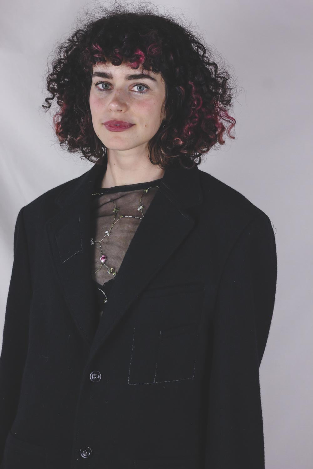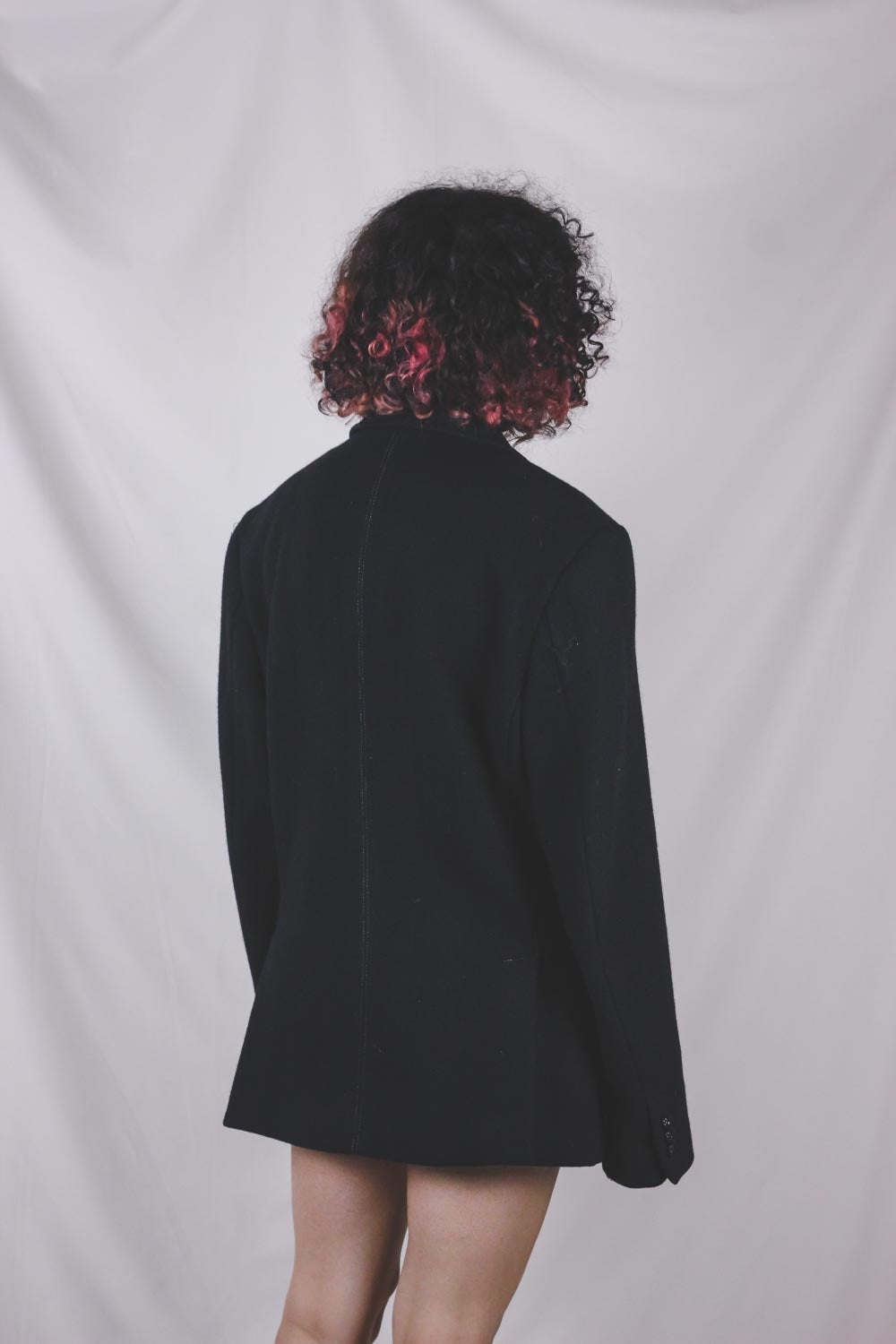 Ajaton ja siisti musta villakangastakki! Valkoiset tikkaukset kauluksessa ja taskussa.