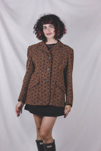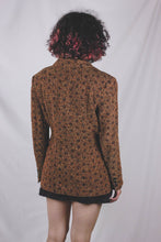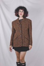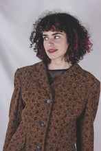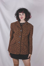 Super upea ruskean ja oranssin sävyssä oleva kukikas laadikas vintagebleiseri. Bleiserissä upea kohokuviointi/eläväinen pinta.