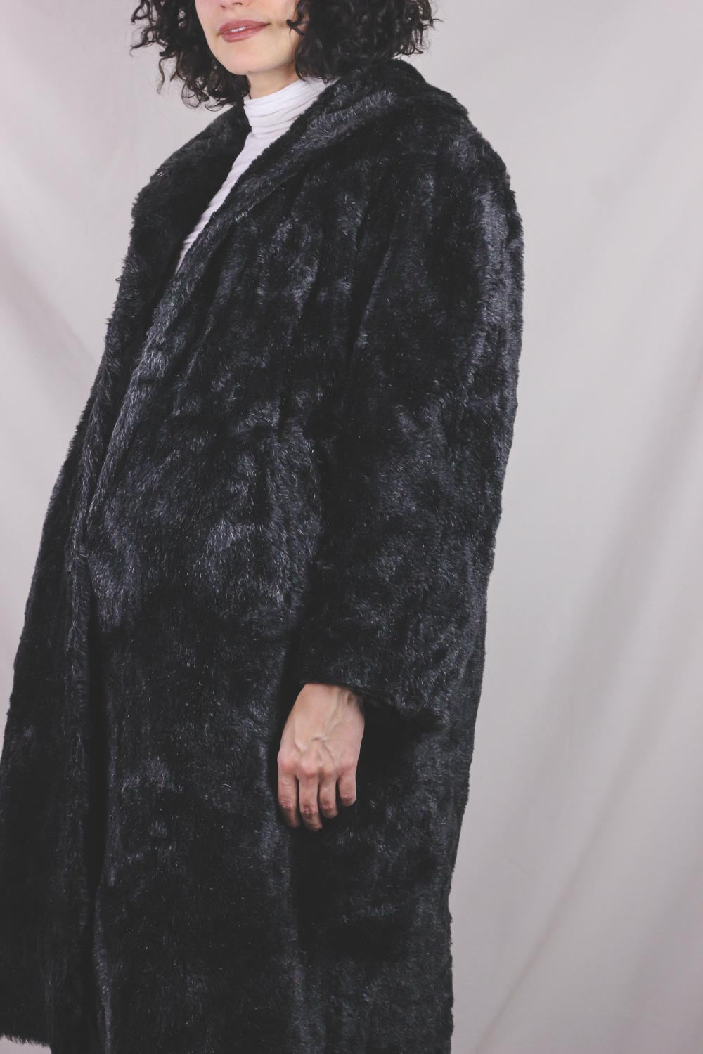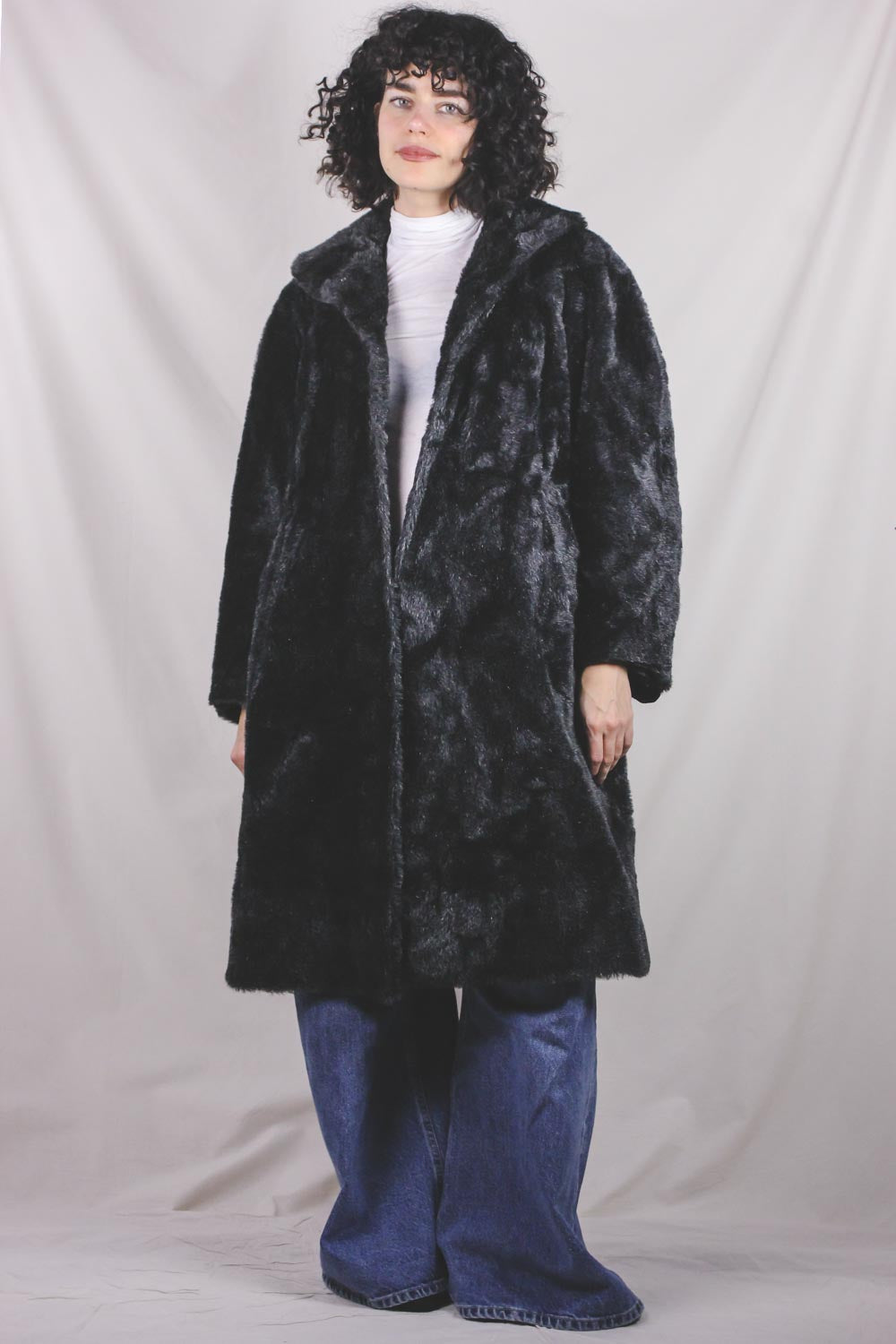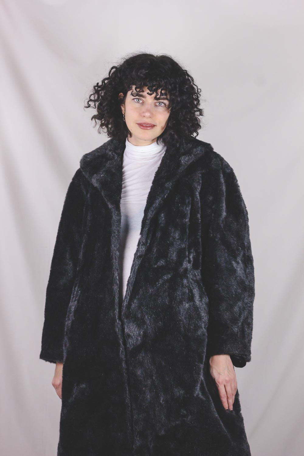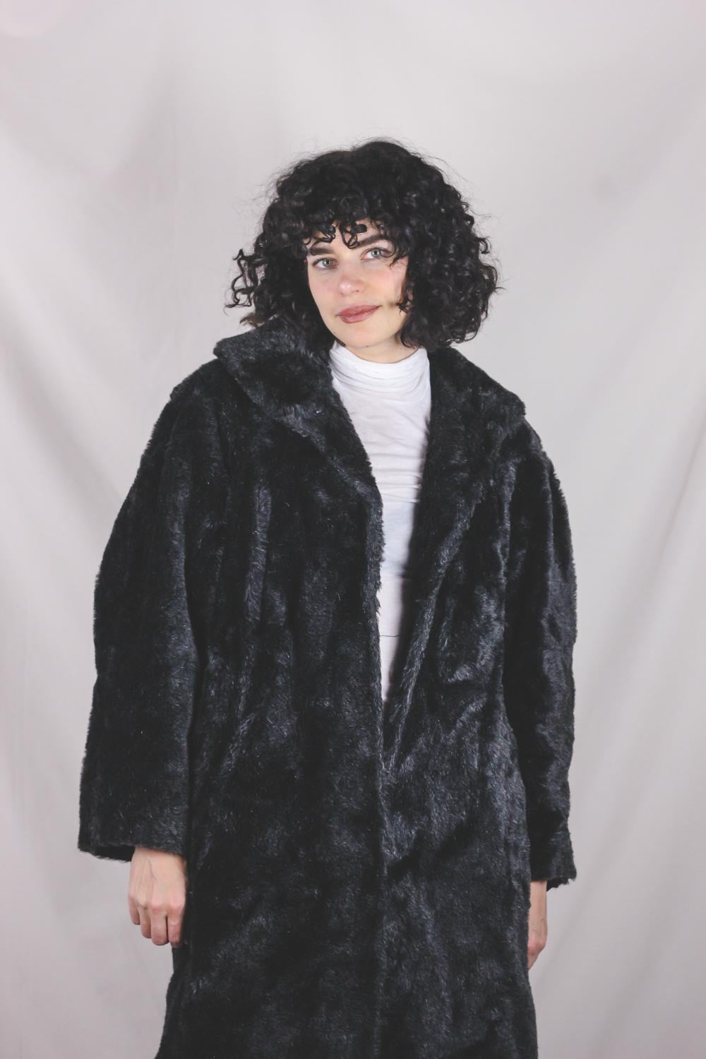Ihana ajaton mustanharmaa keinokarvatakki! Takissa taskut. Suljetaan edestä yhdellä napilla.