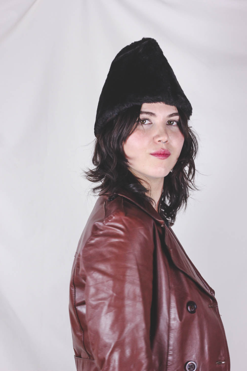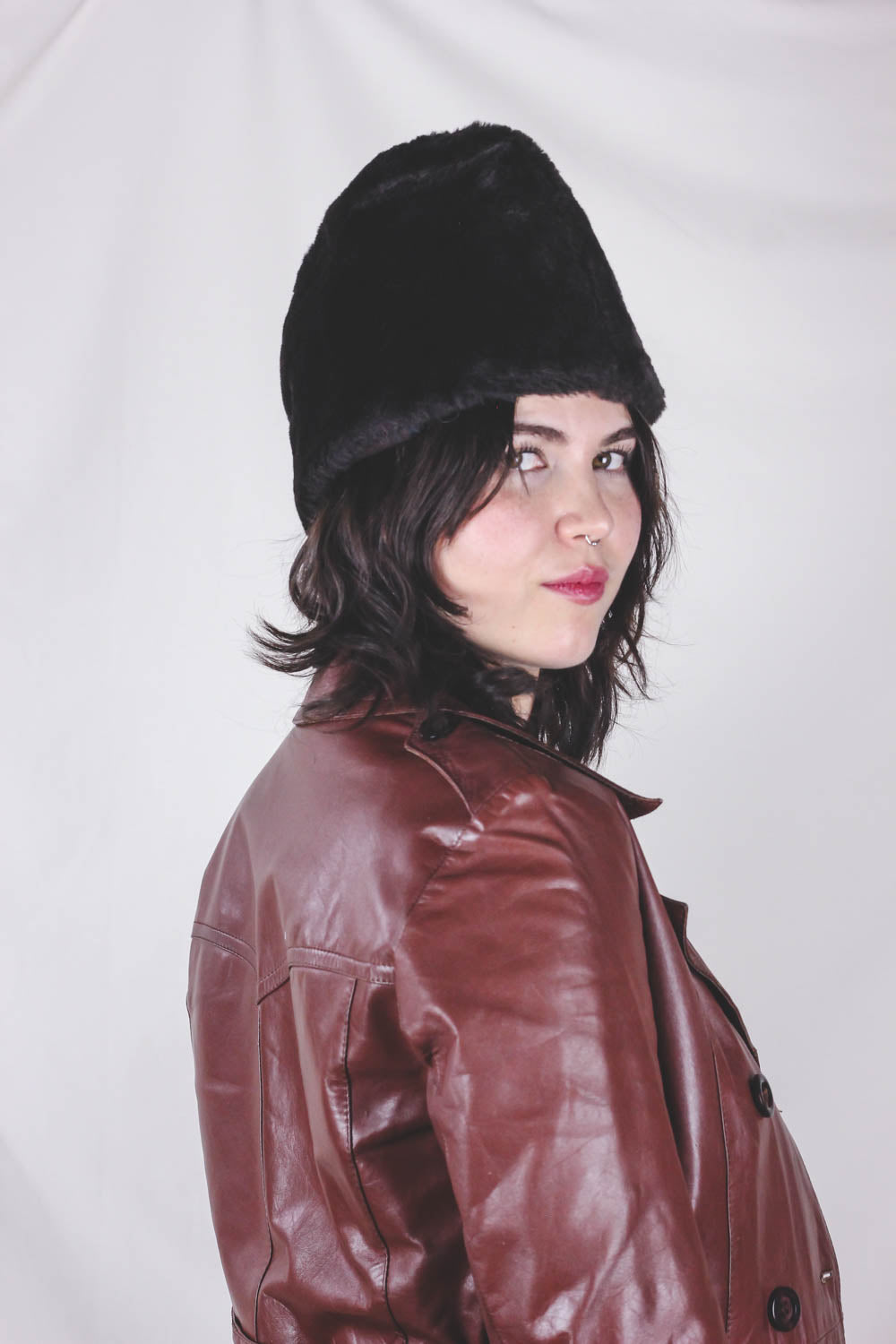 Musat vintagehattu. Hatussa myös niskan ja korvat peittävä suojus, jonka saa taitettua alas.