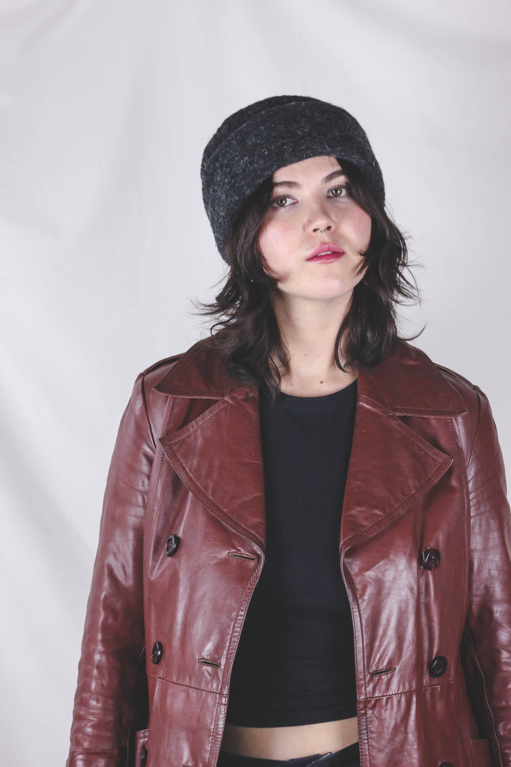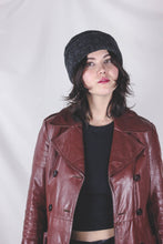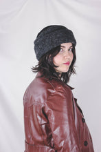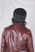 Harmaa villasekoite hattu, jossa musta päälaki.