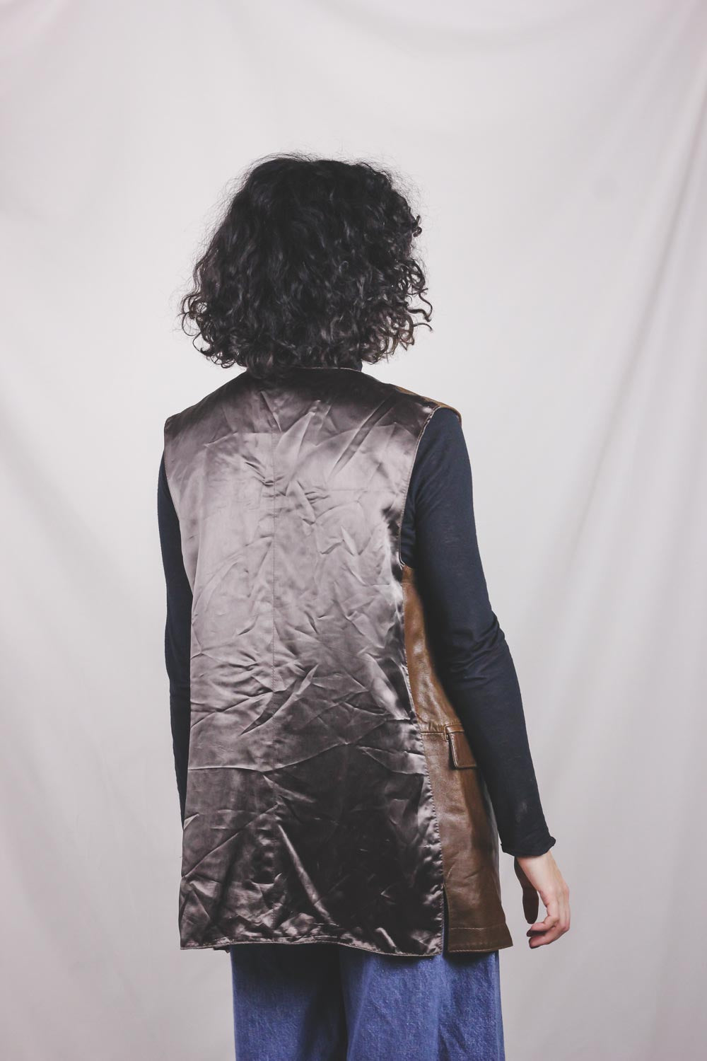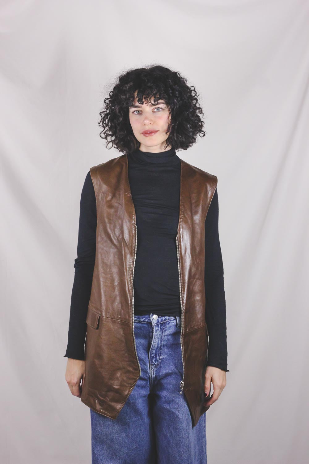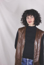 Upea ruskea pitkä vetoketjullinen vintagenahkaliivi. <3