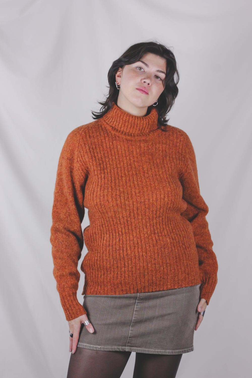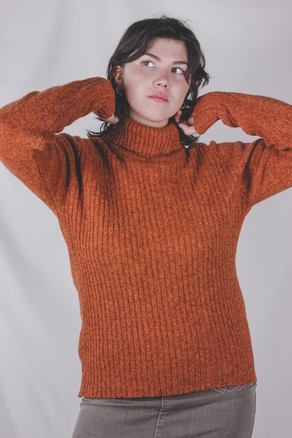Todella upea poolokauluksinen murretun oranssi kotimaisen Finn Karelian valmistama villaneule.