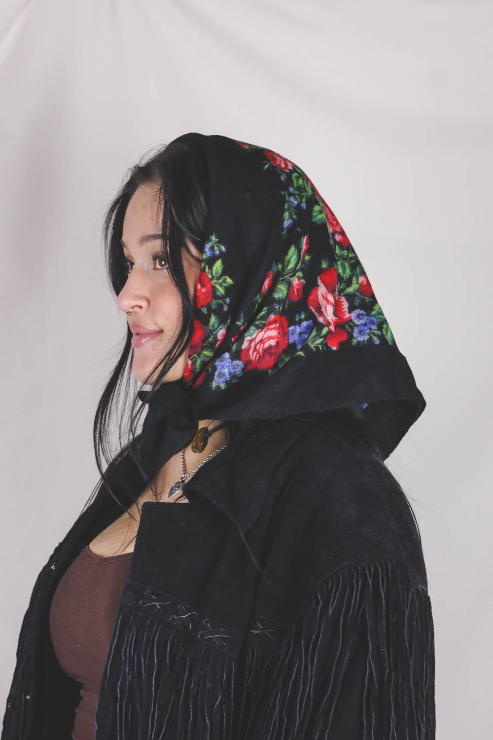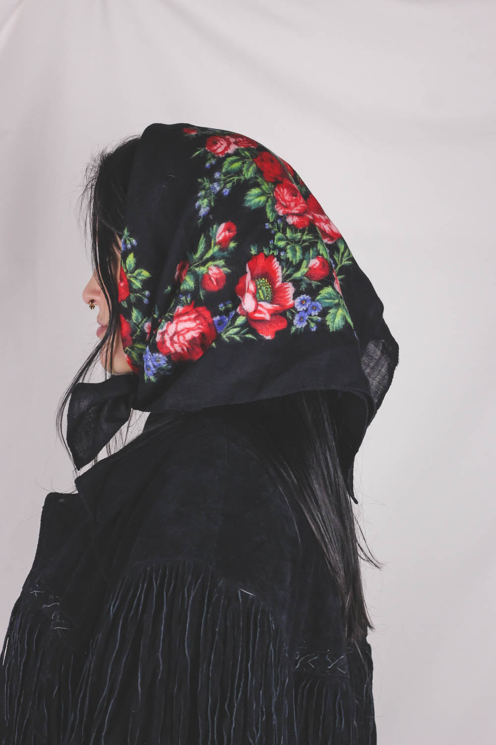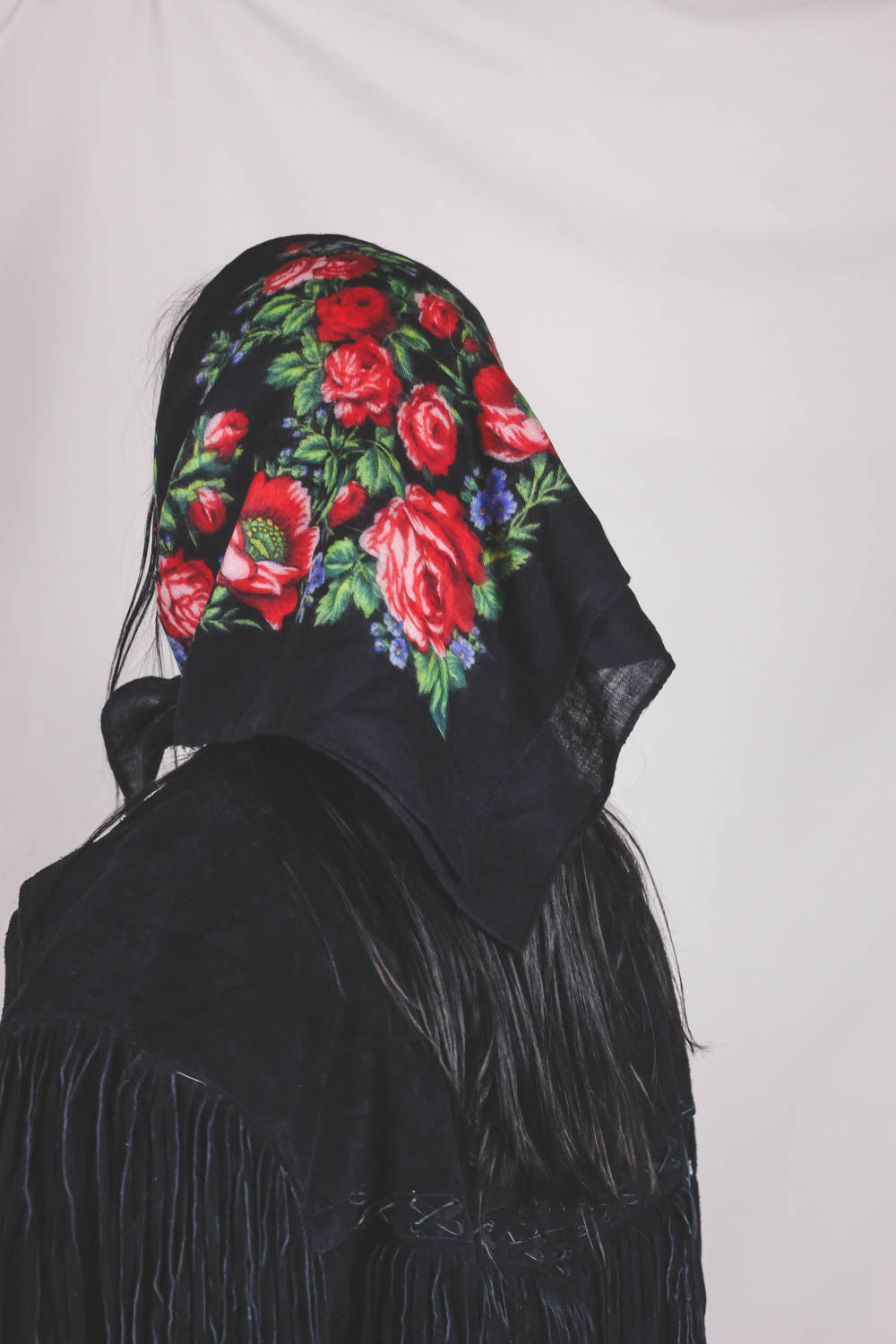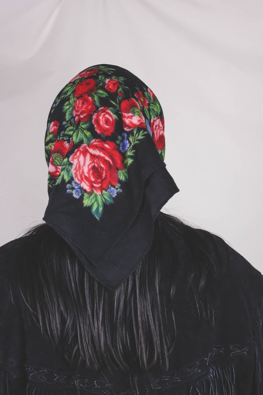 Ihana musta villahuivi ruusuilla. <3
