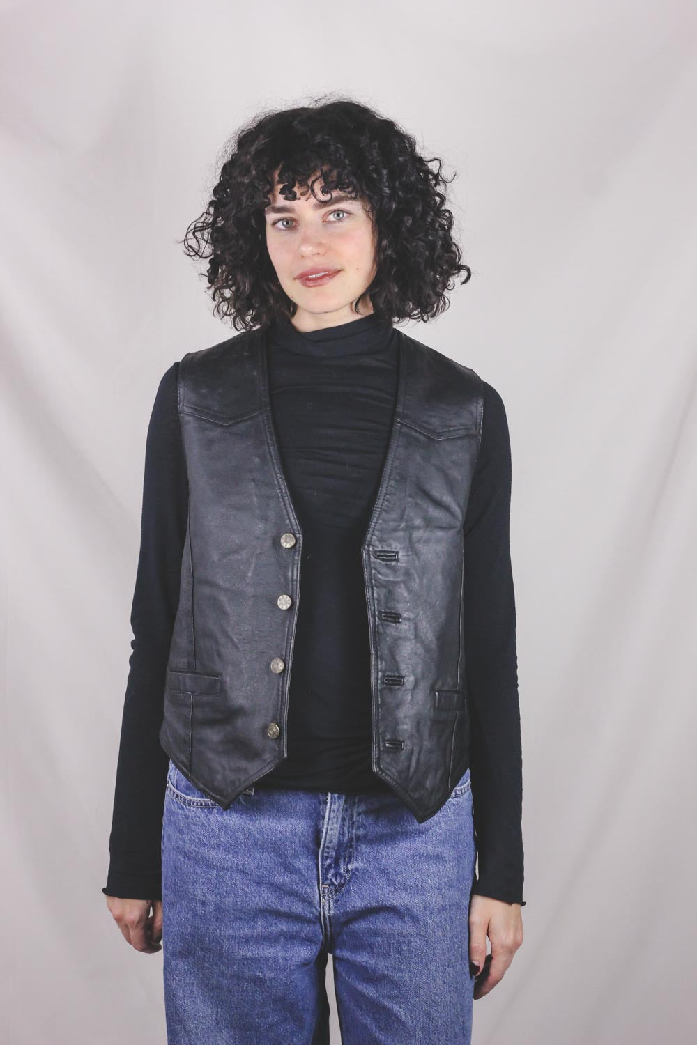 Ihana ajaton musta vintagenahkaliivi.