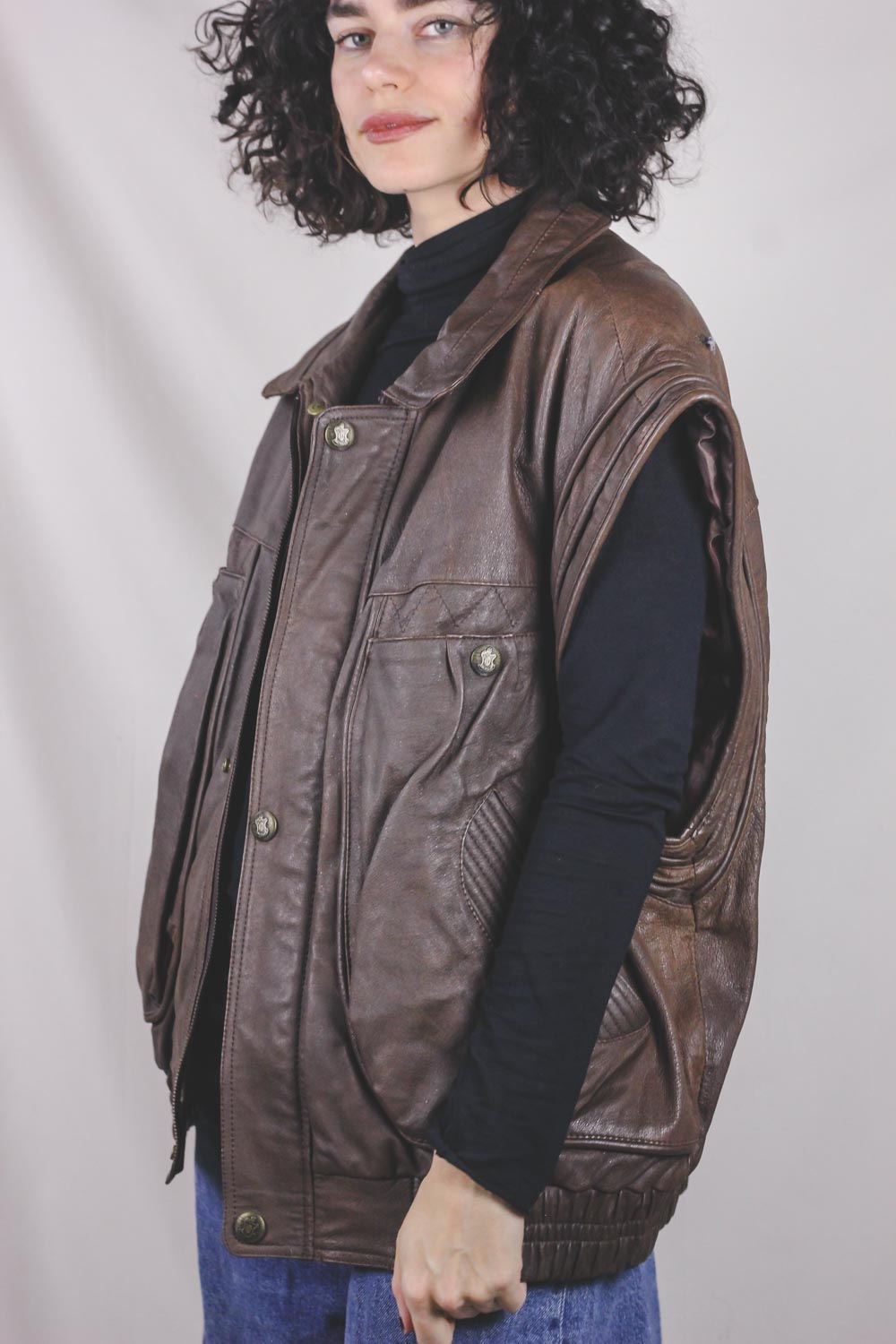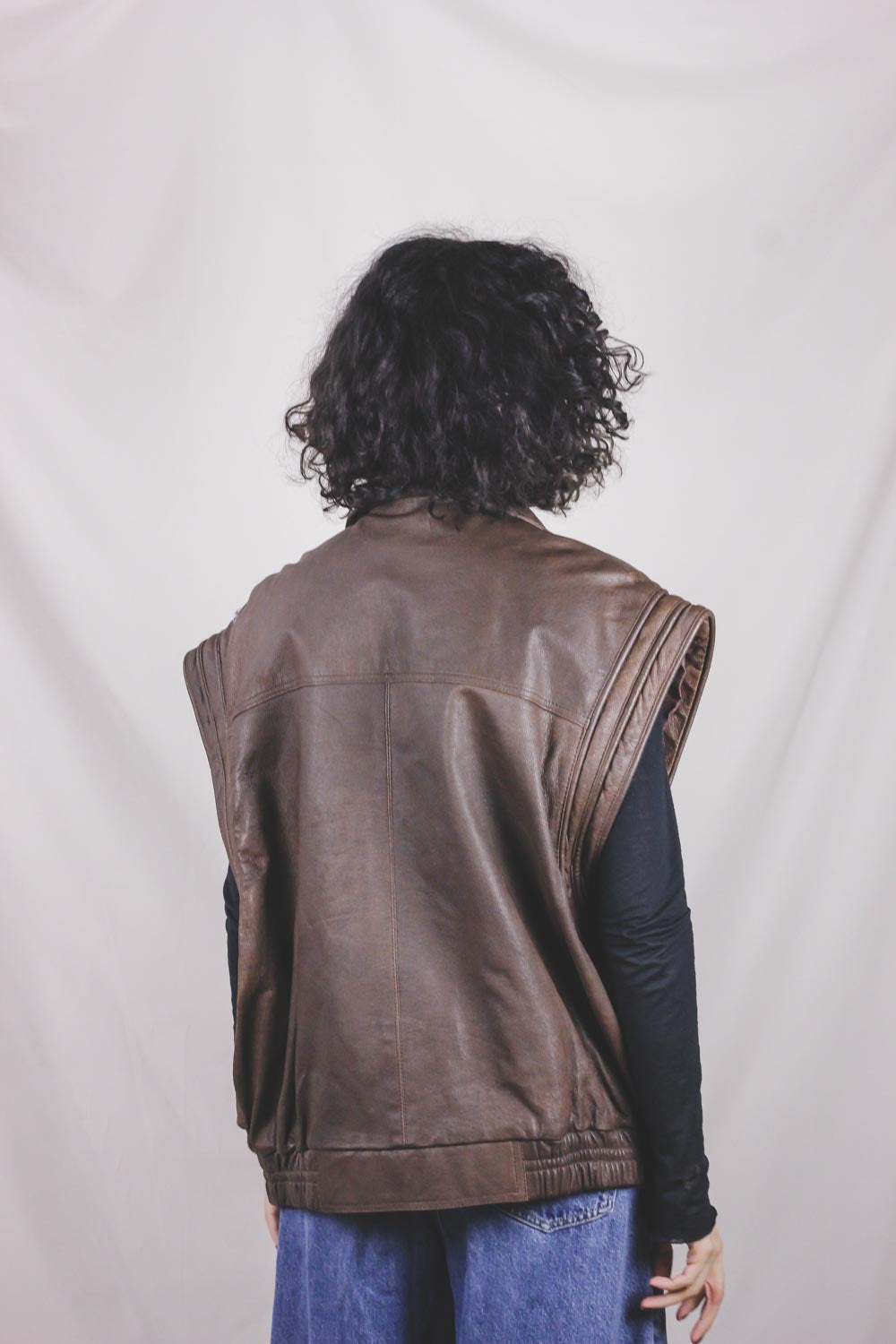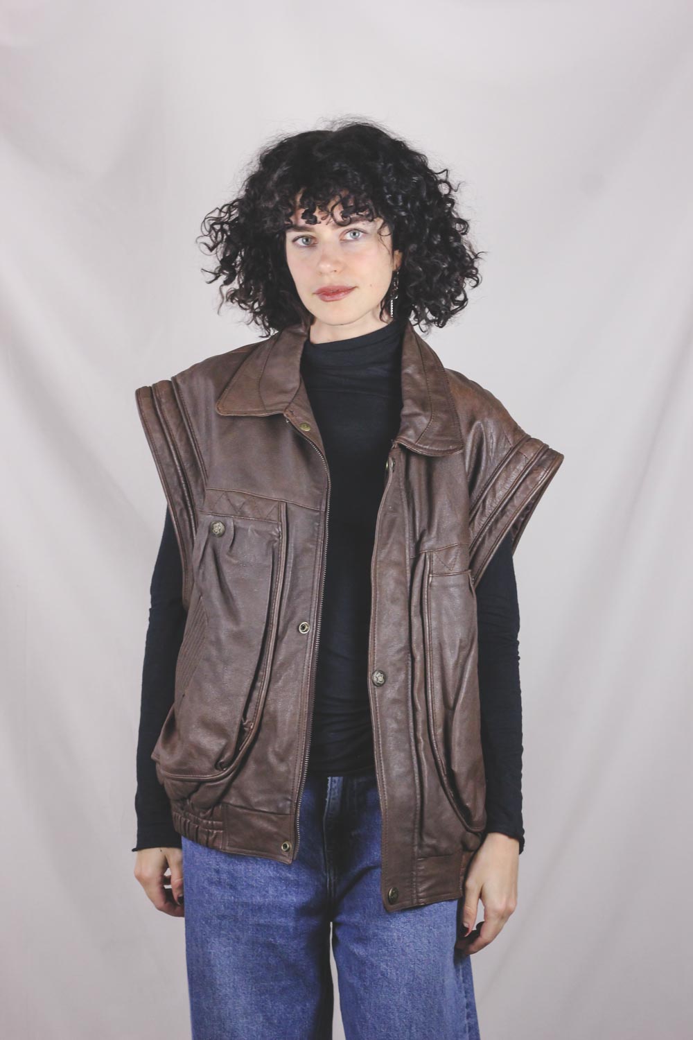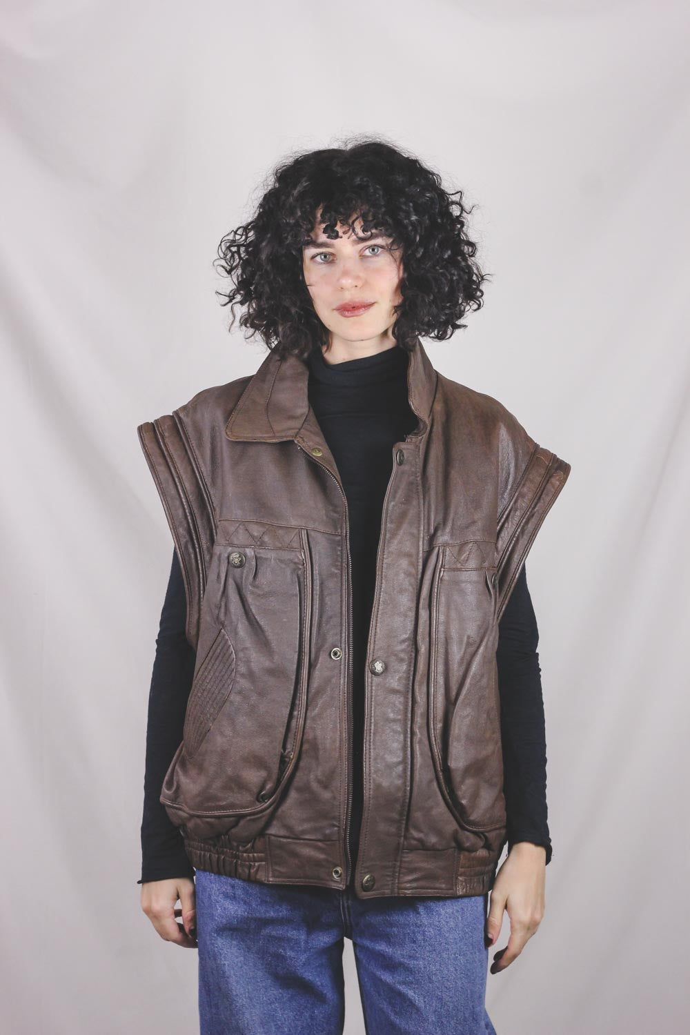 Ihana harmaanruskea vintagenahkaliivi! Paksuhko (kuin nahkatakki).