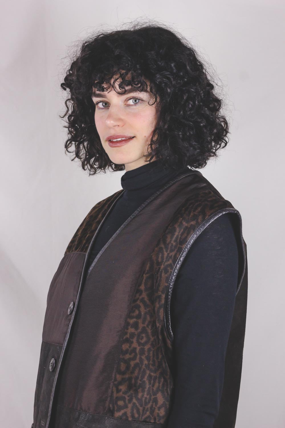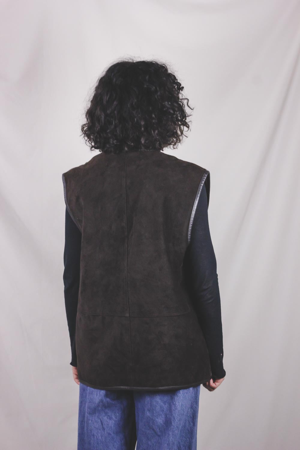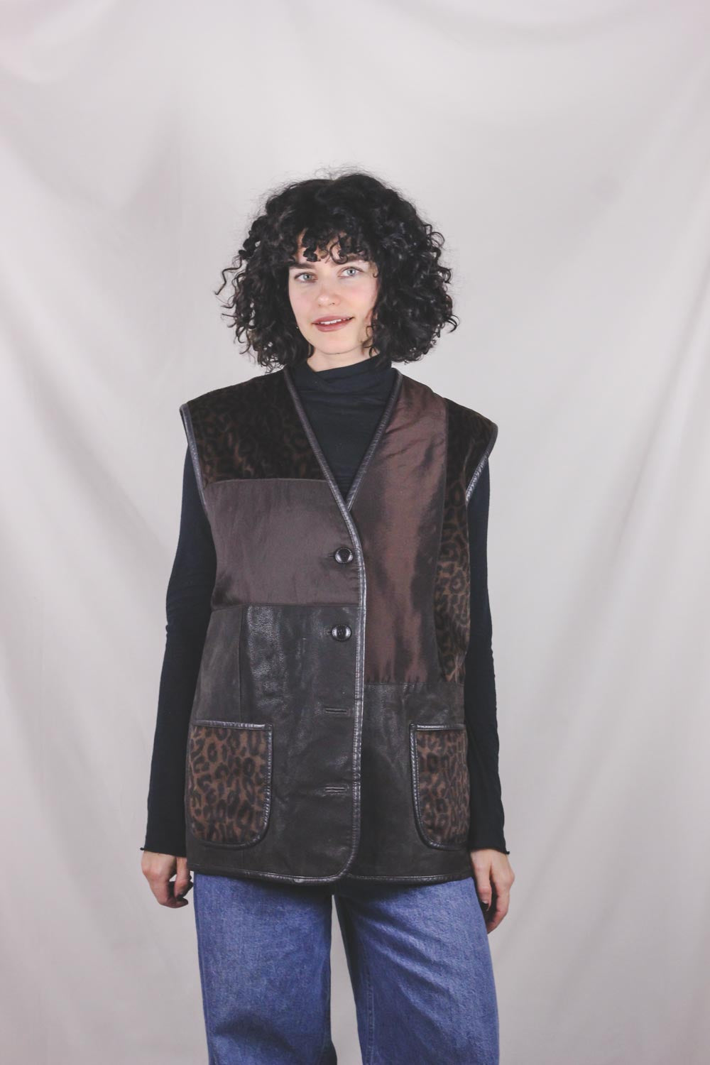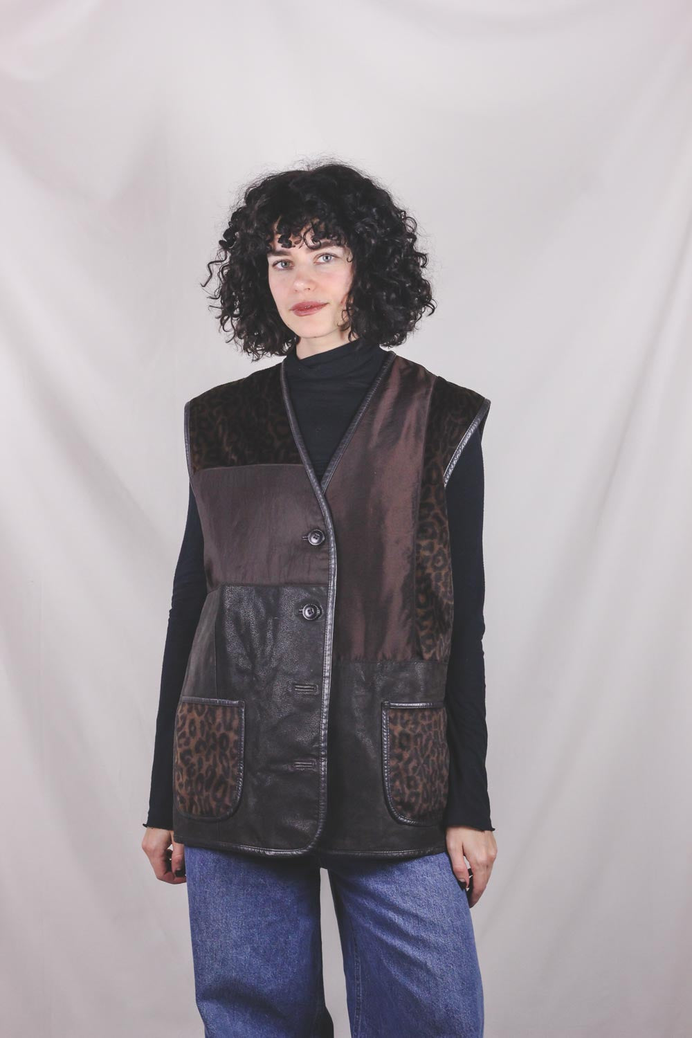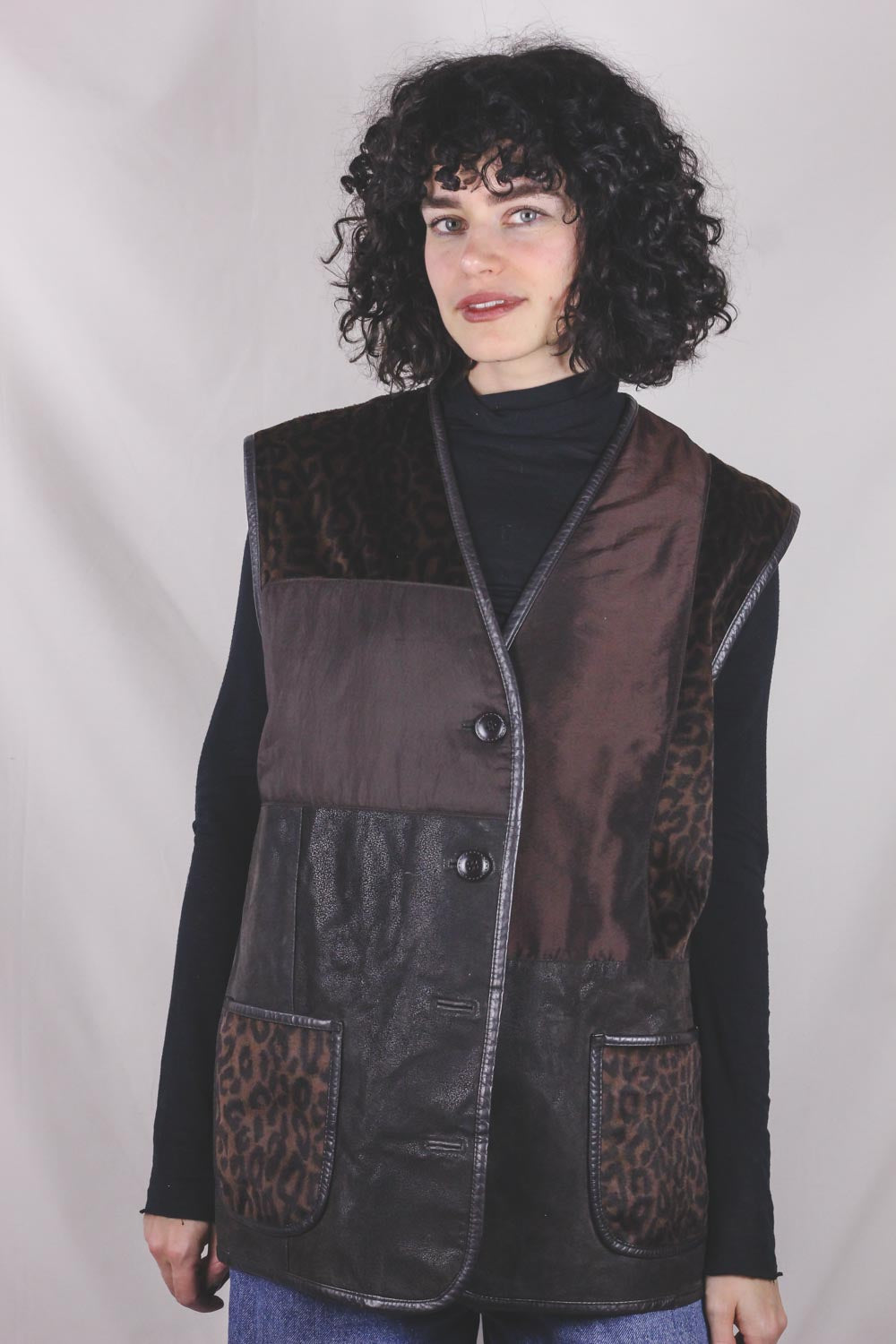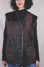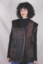 Ihana 90-luvun liivi, jossa nahkaa ja kangaspaloja.