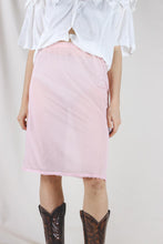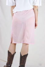 Söpö läpikuultava vaaleanpunainen vintagehame kuminauhavyötäröllä.