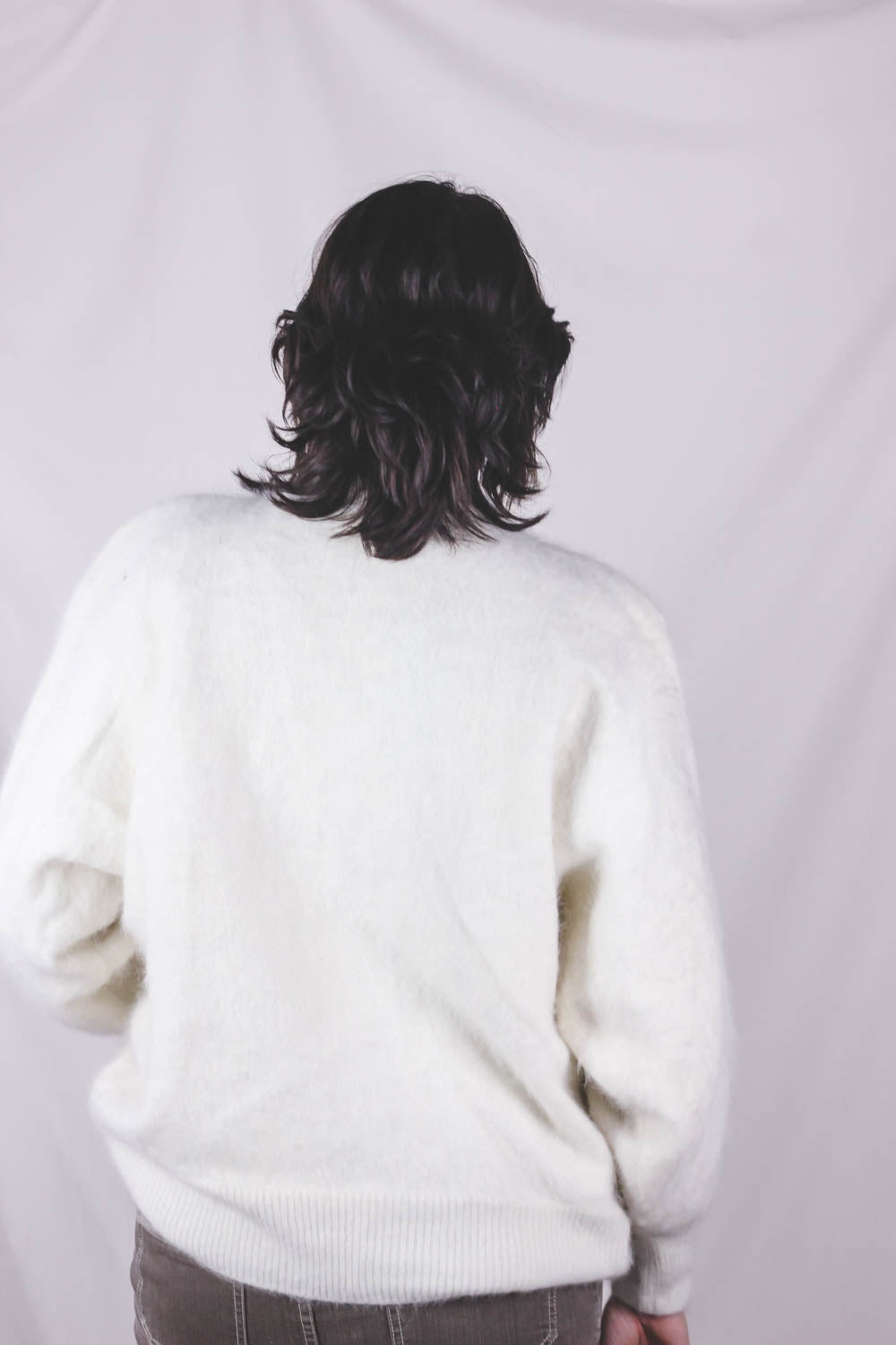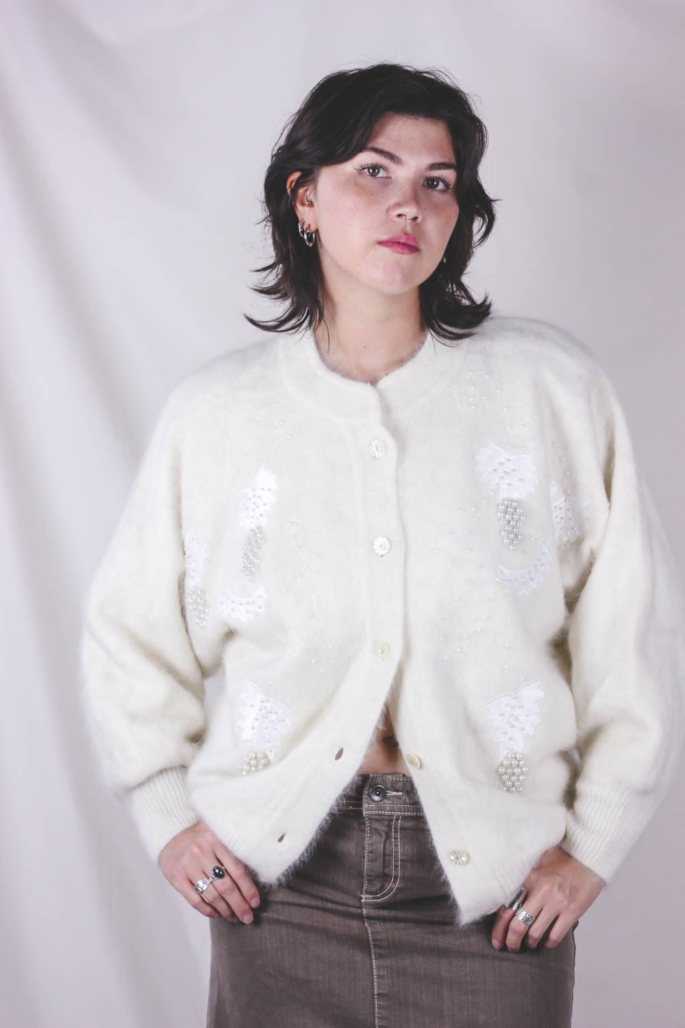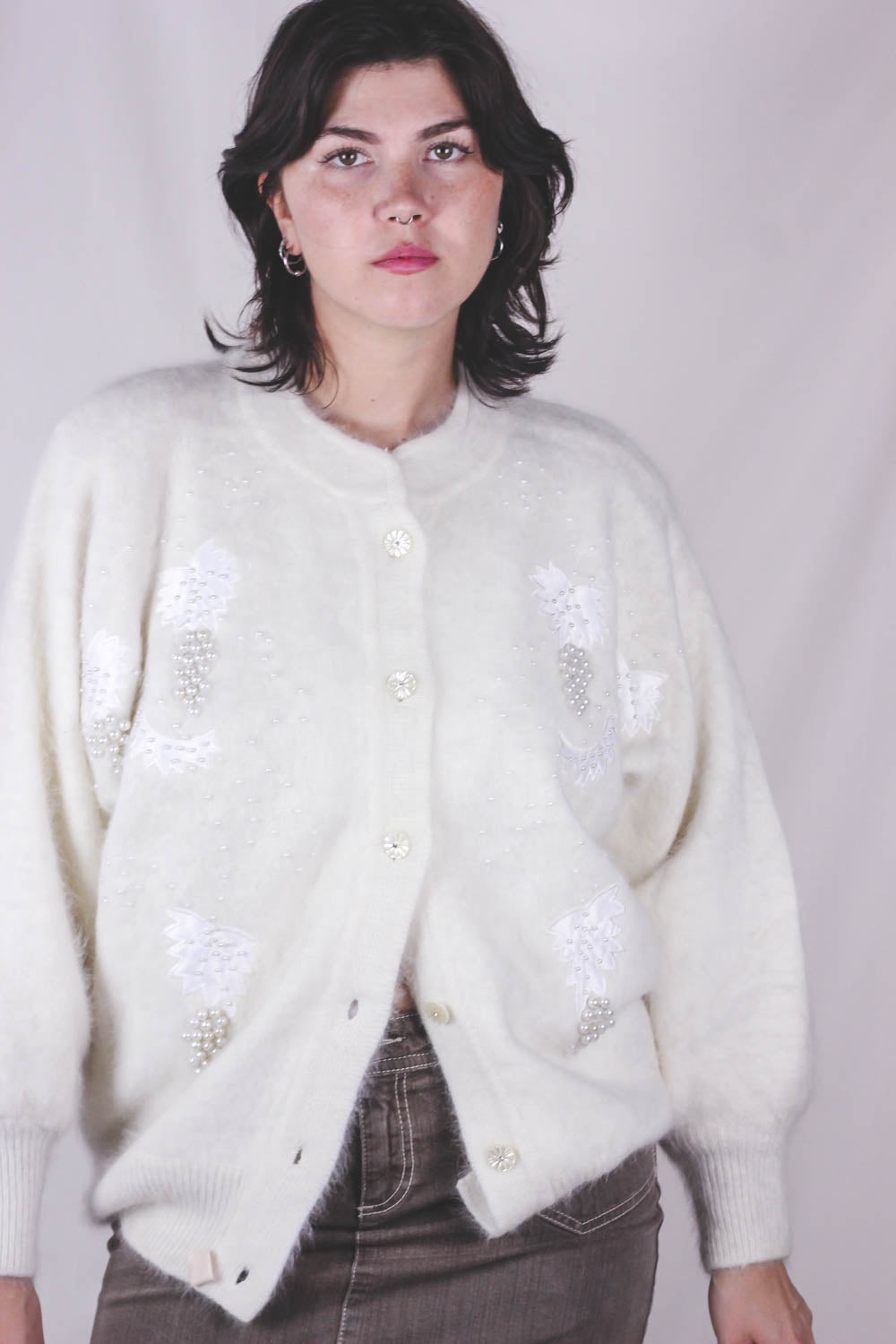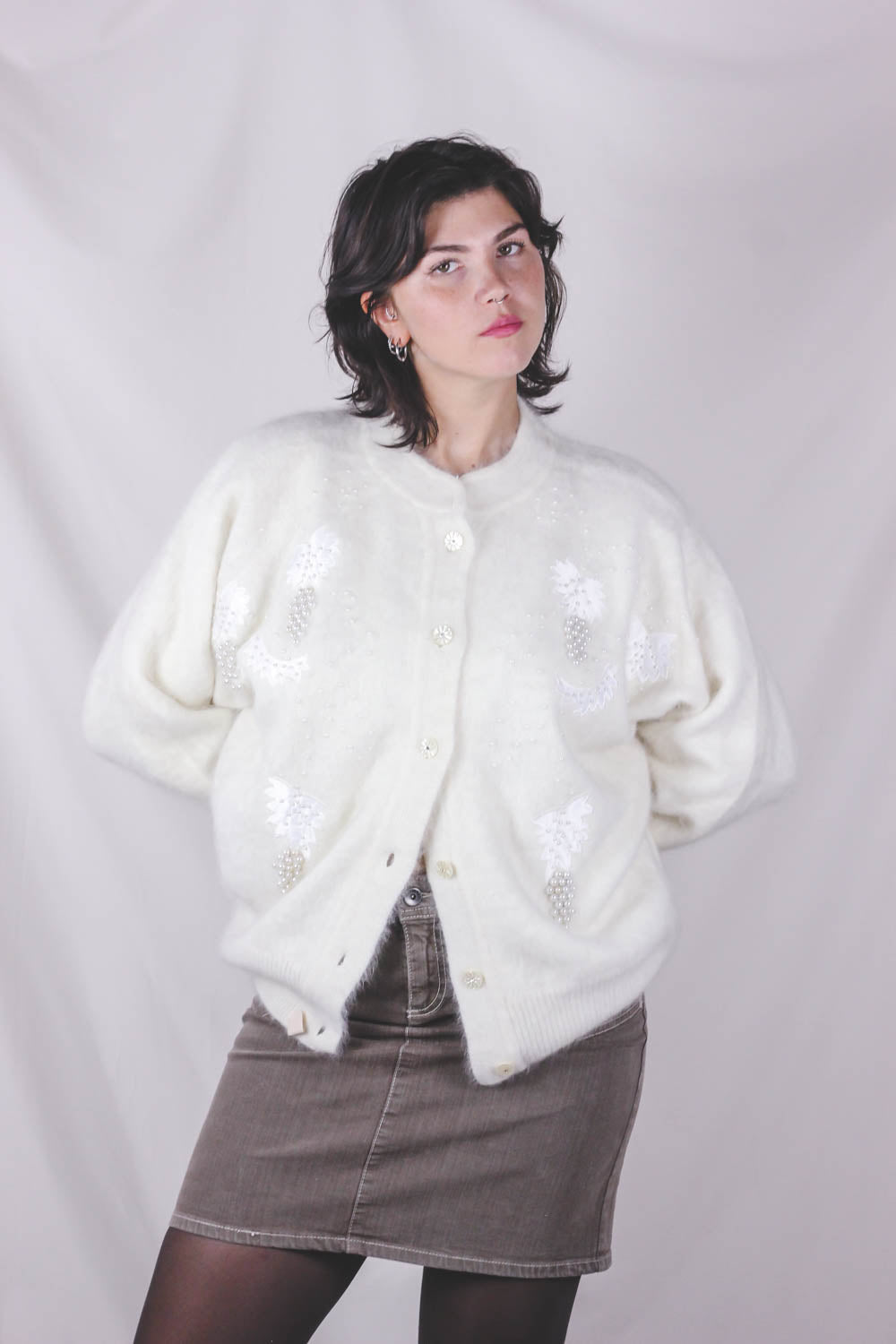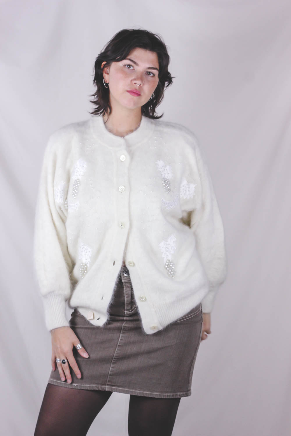 Super upea valkoinen helmikoristeltu angoraneule! Neuleessa vuori.